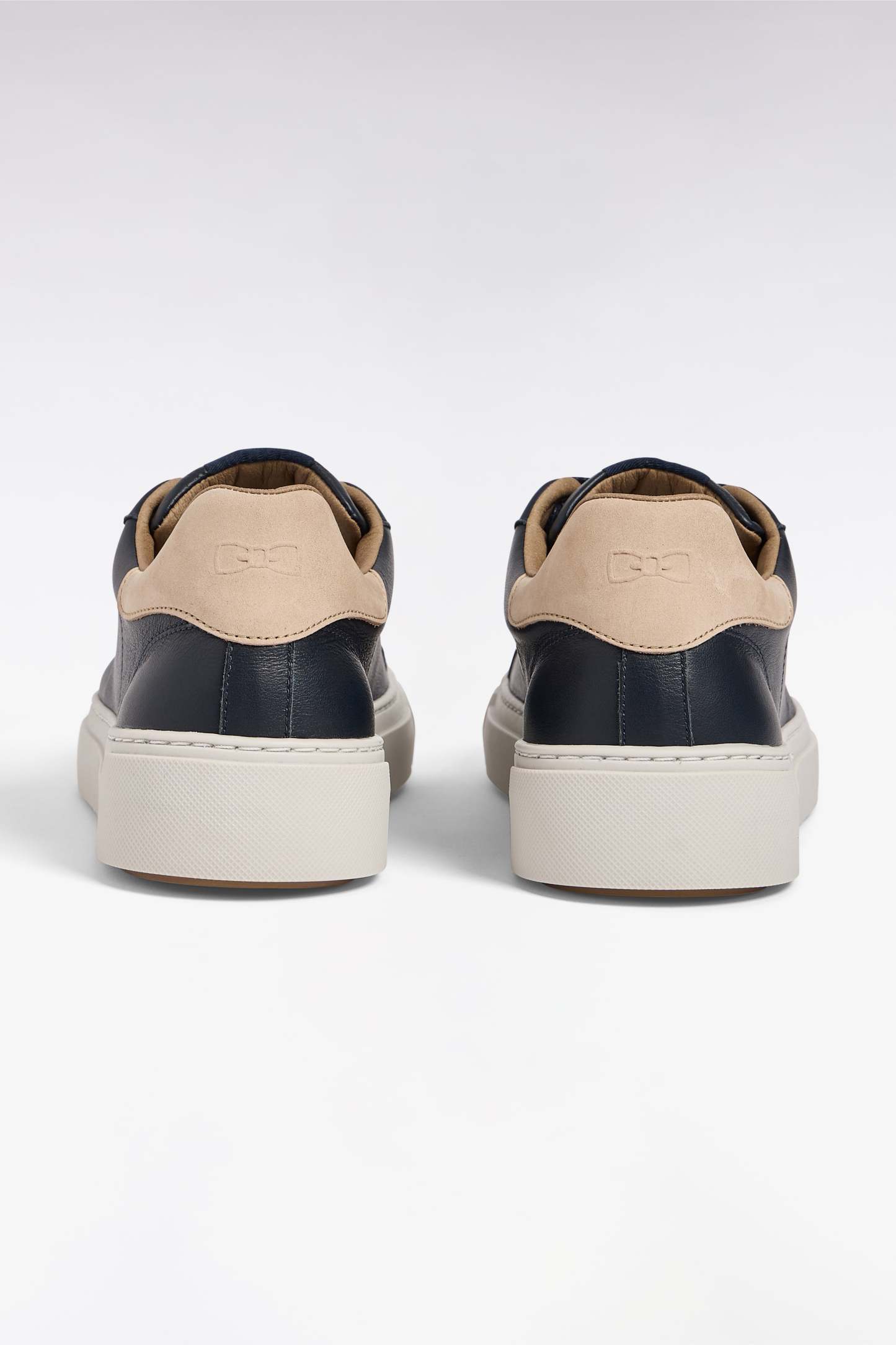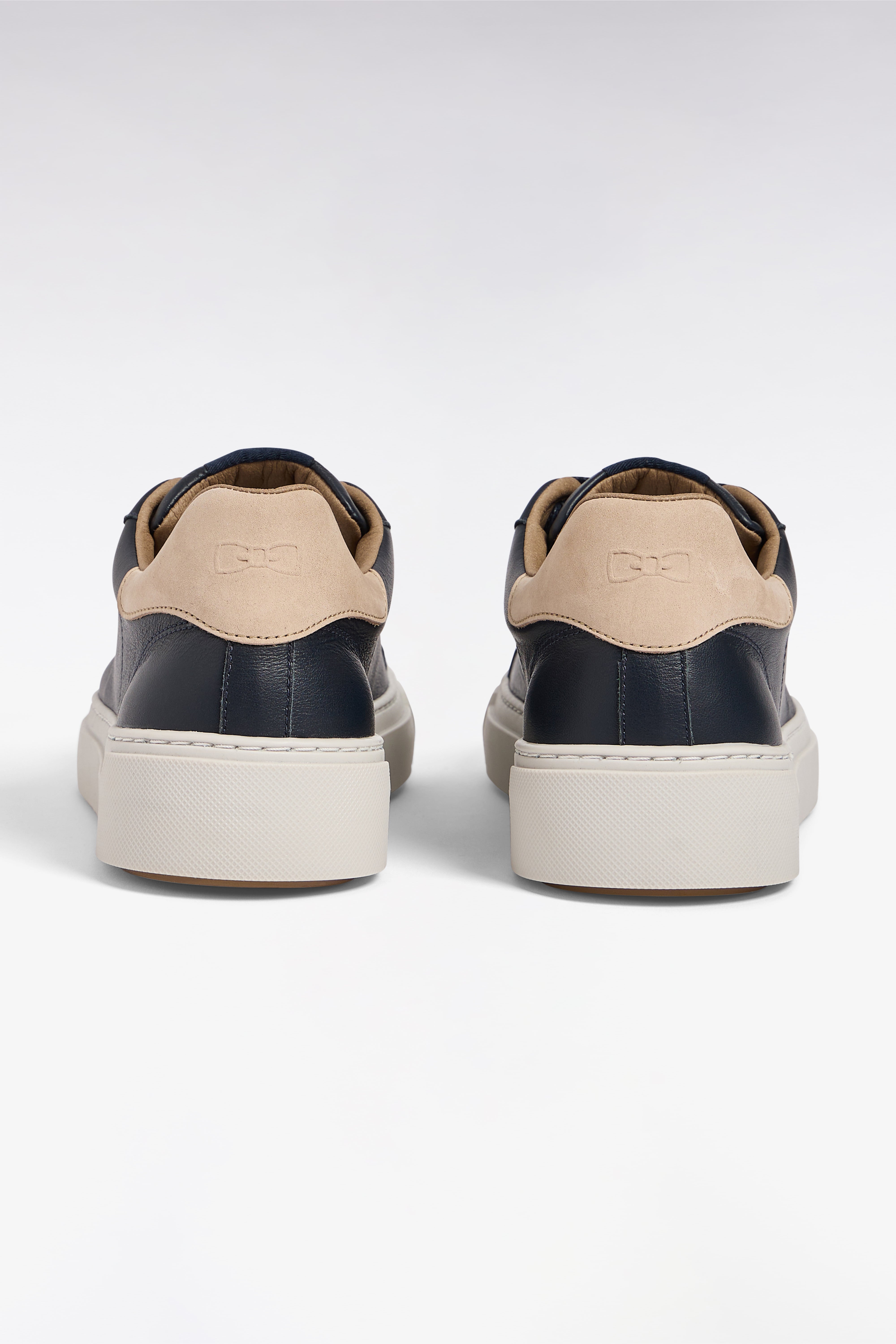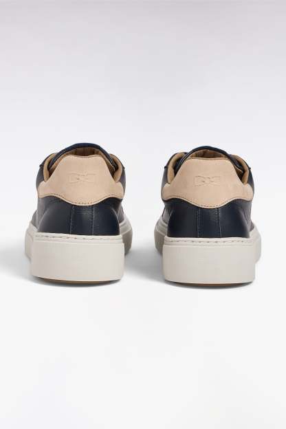 Baskets basses bimatières en cuir marine et cuir suédé sable
