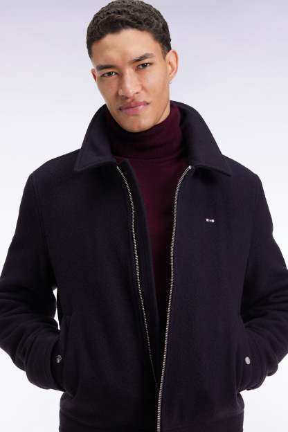 Blouson en laine bouillie mélangée marine