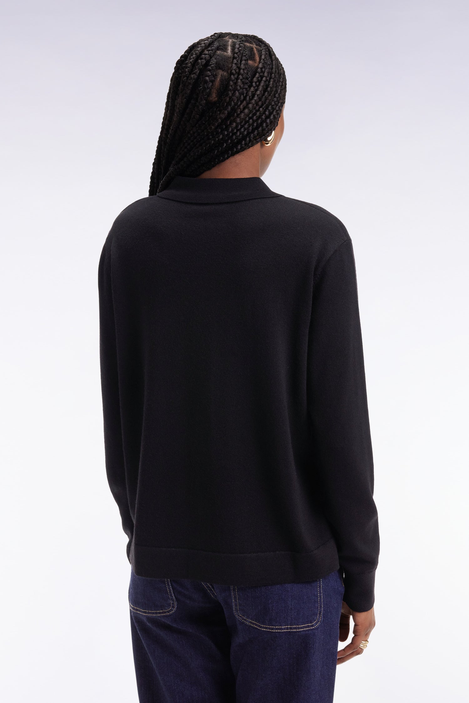 Tricoté dans une laine mérinos aux multiples propriétés (douce, hypoallergénique et thermorégulatrice), ce cardigan femme conjugue douceur enveloppante et légèreté naturelle. Sa ligne sobre, soulignée par son col classique et sa broderie nœud papillon discrète en bas de pièce, en fait une élément clé du vestiaire féminin. Superposé sur une chemise oversized pour une silhouette jouant sur les volumes ou porté à même la peau, ce cardigan boutonné s’adapte à toutes les envies de style. Un basique luxueux offert dans en coloris marine, bordeaux ou noir pour composer une infinité de silhouettes dès l'arrivée de l'automne.