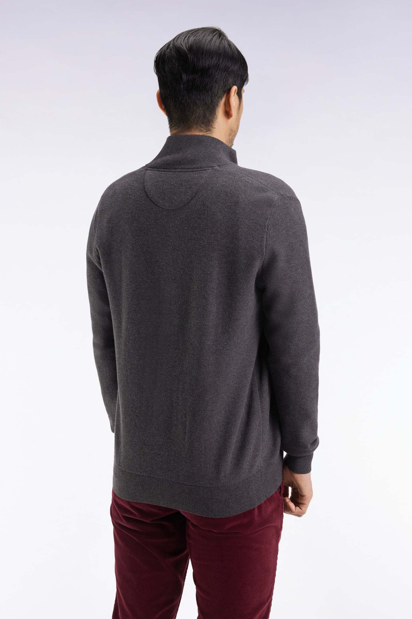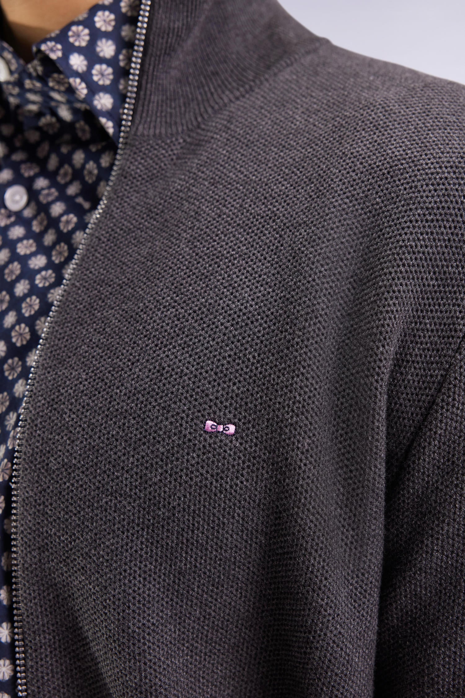 Ce pull zippé à col camionneur alliant à la perfection élégance et confort. Confectionné en coton tricoté en nid d'abeille pour un rendu plus texturé, il met en valeur son nœud papillon brodé au fil rose, l'emblème iconique de notre maison française. Le col montant zippé et les finitions soignées apportent une touche moderne à ce cardigan col camionneur proposé dans plusieurs coloris classiques