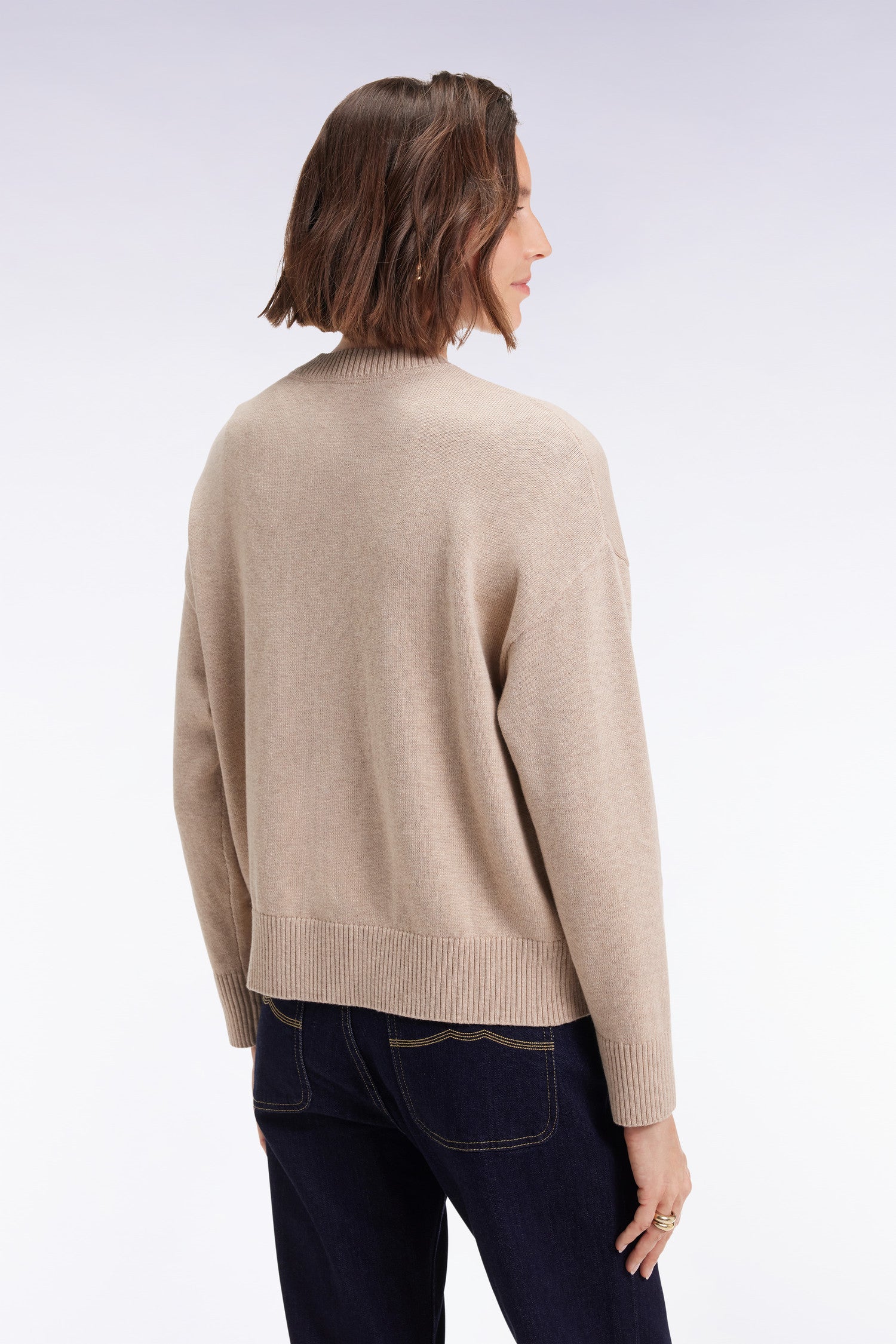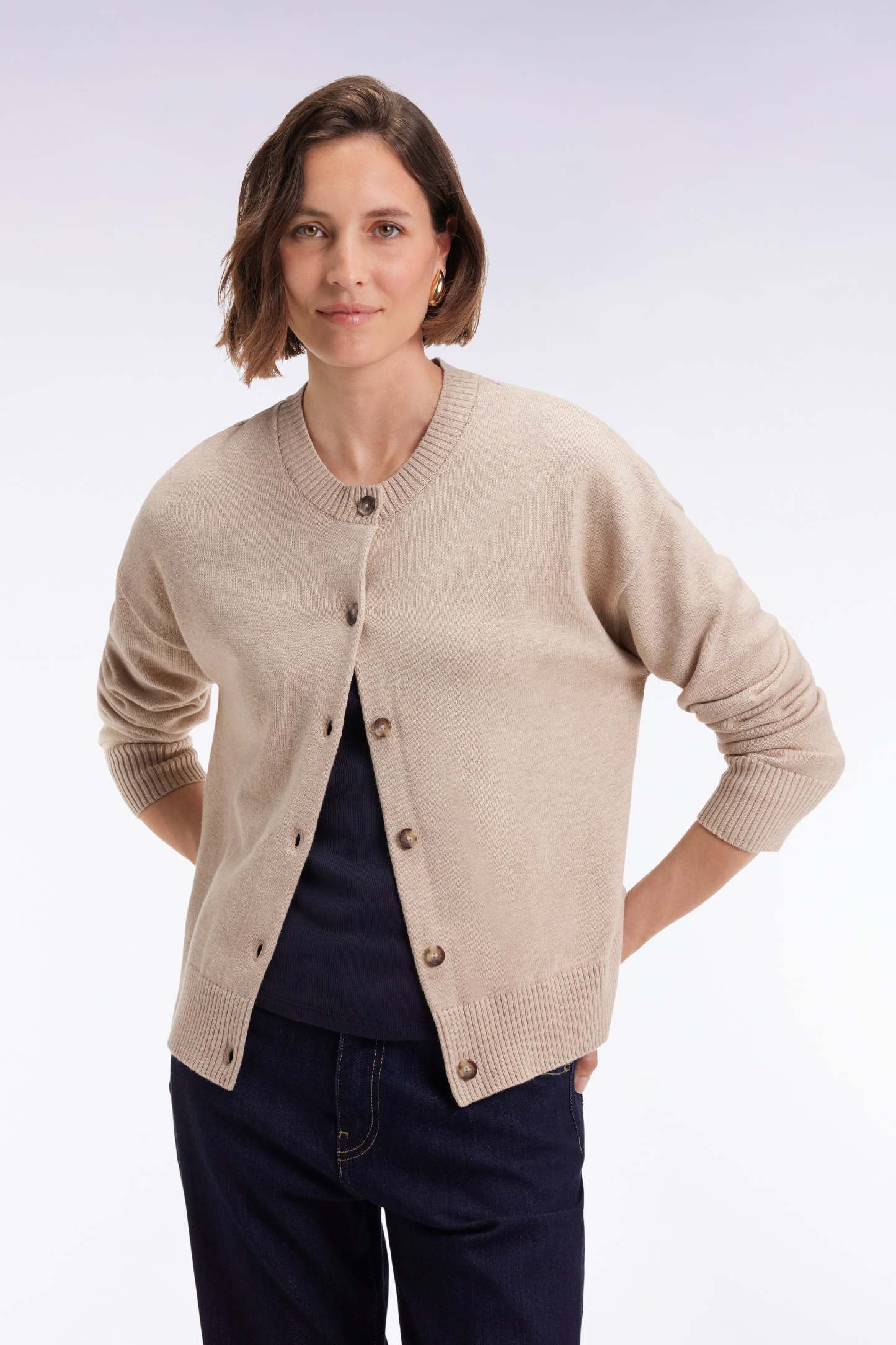 Cardigan en laine et coton beige coupe Relaxed