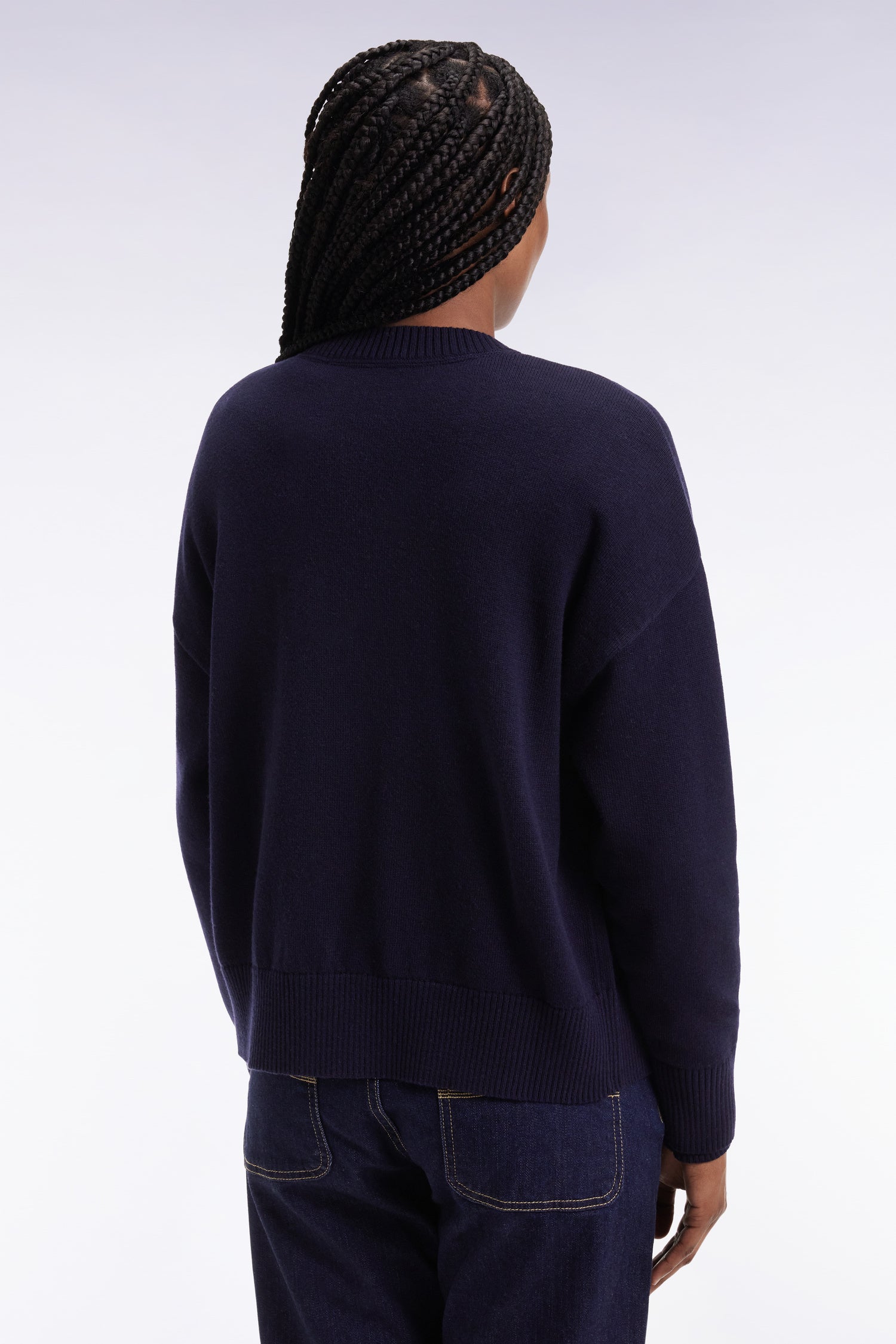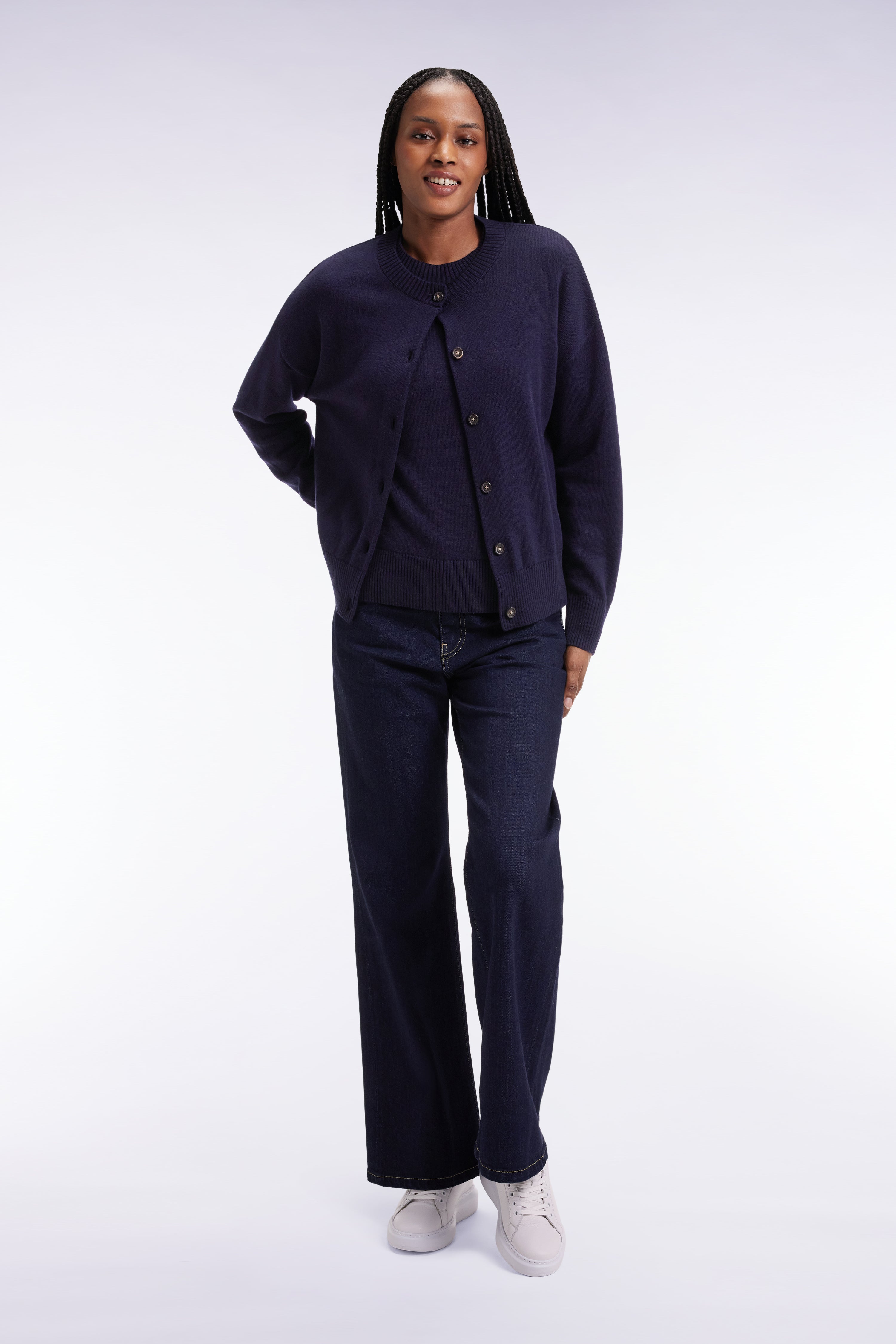Cardigan en laine et coton marine coupe Relaxed