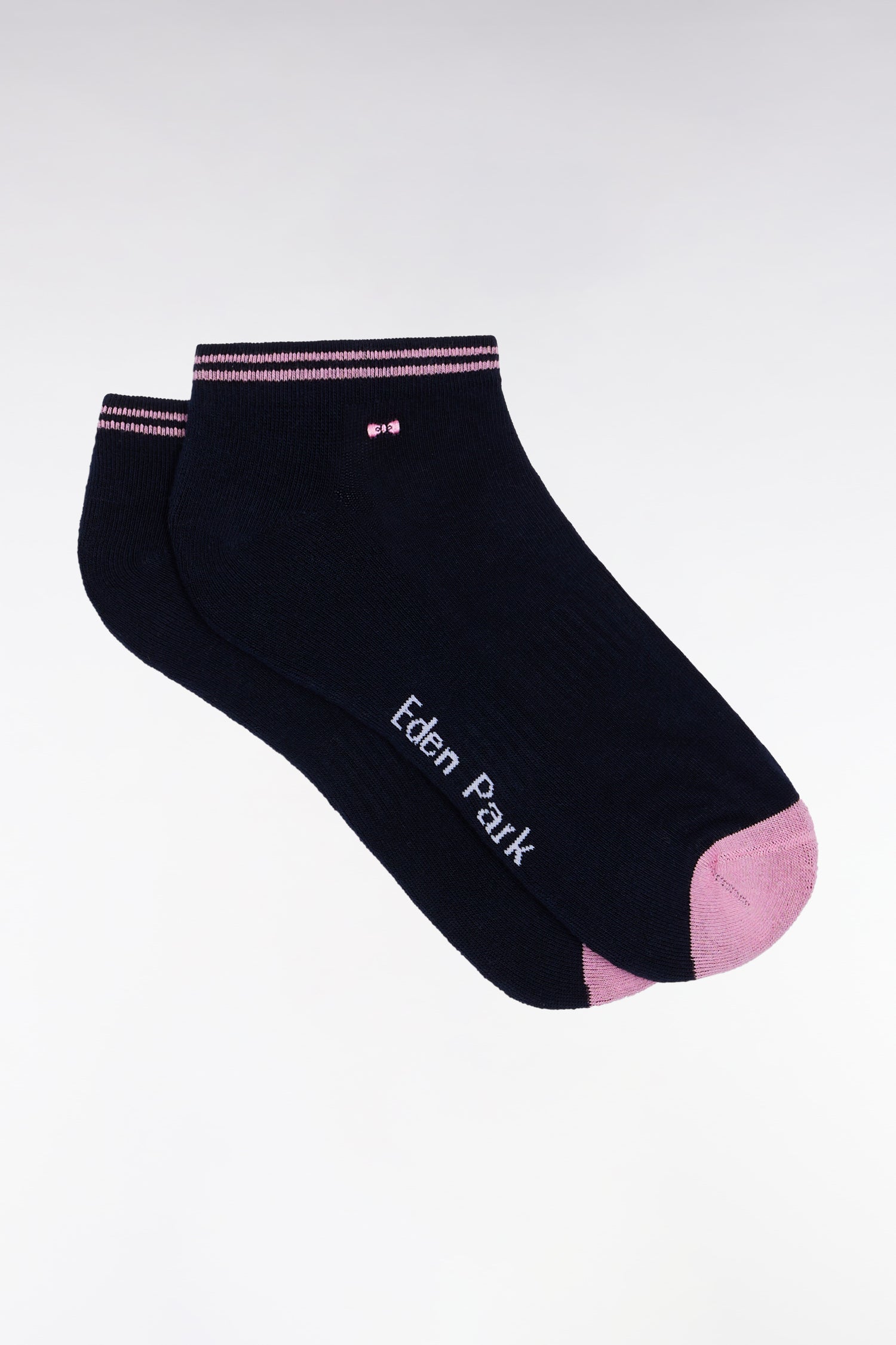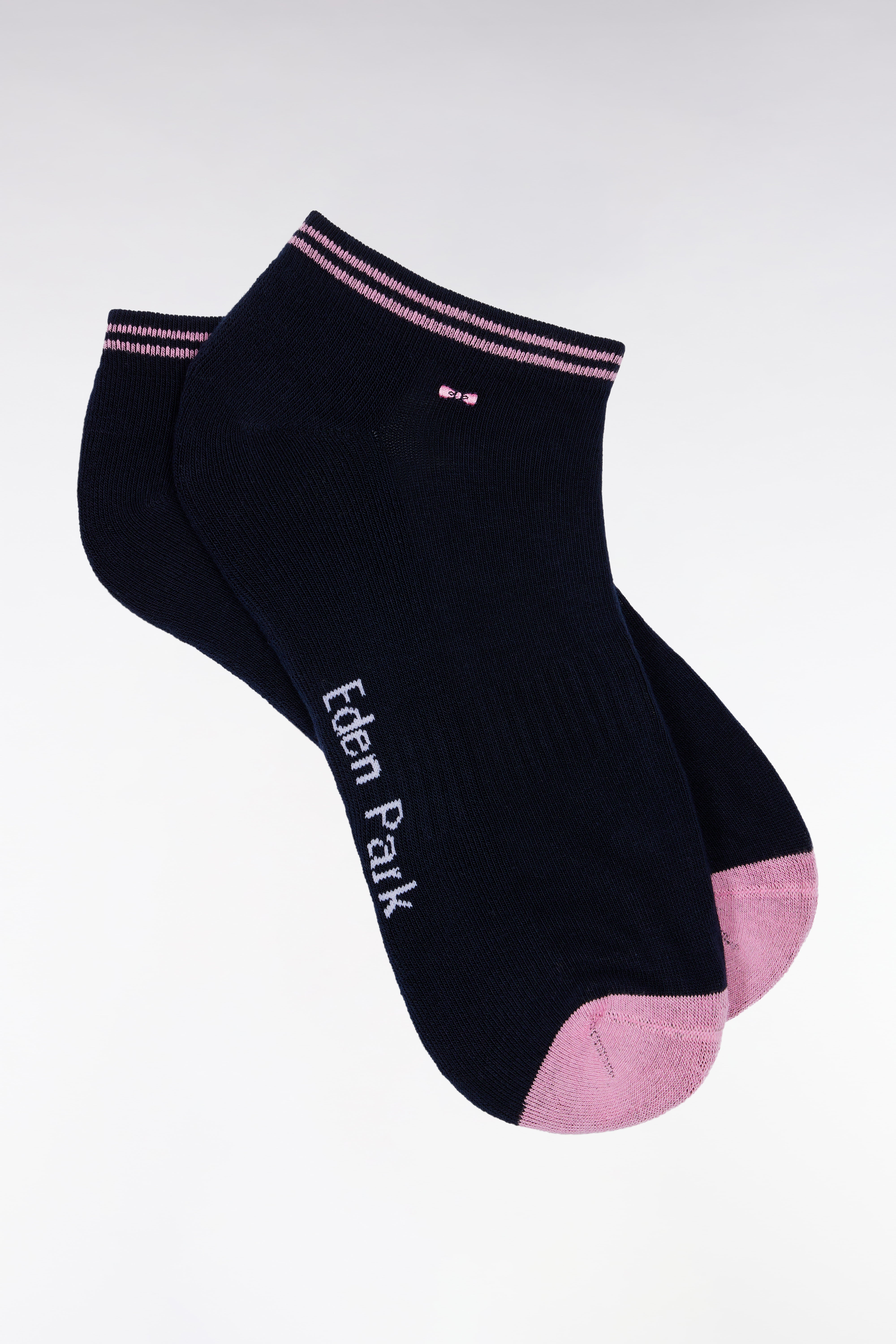 Chaussettes basses en coton stretch mélangé marine bordure rayée