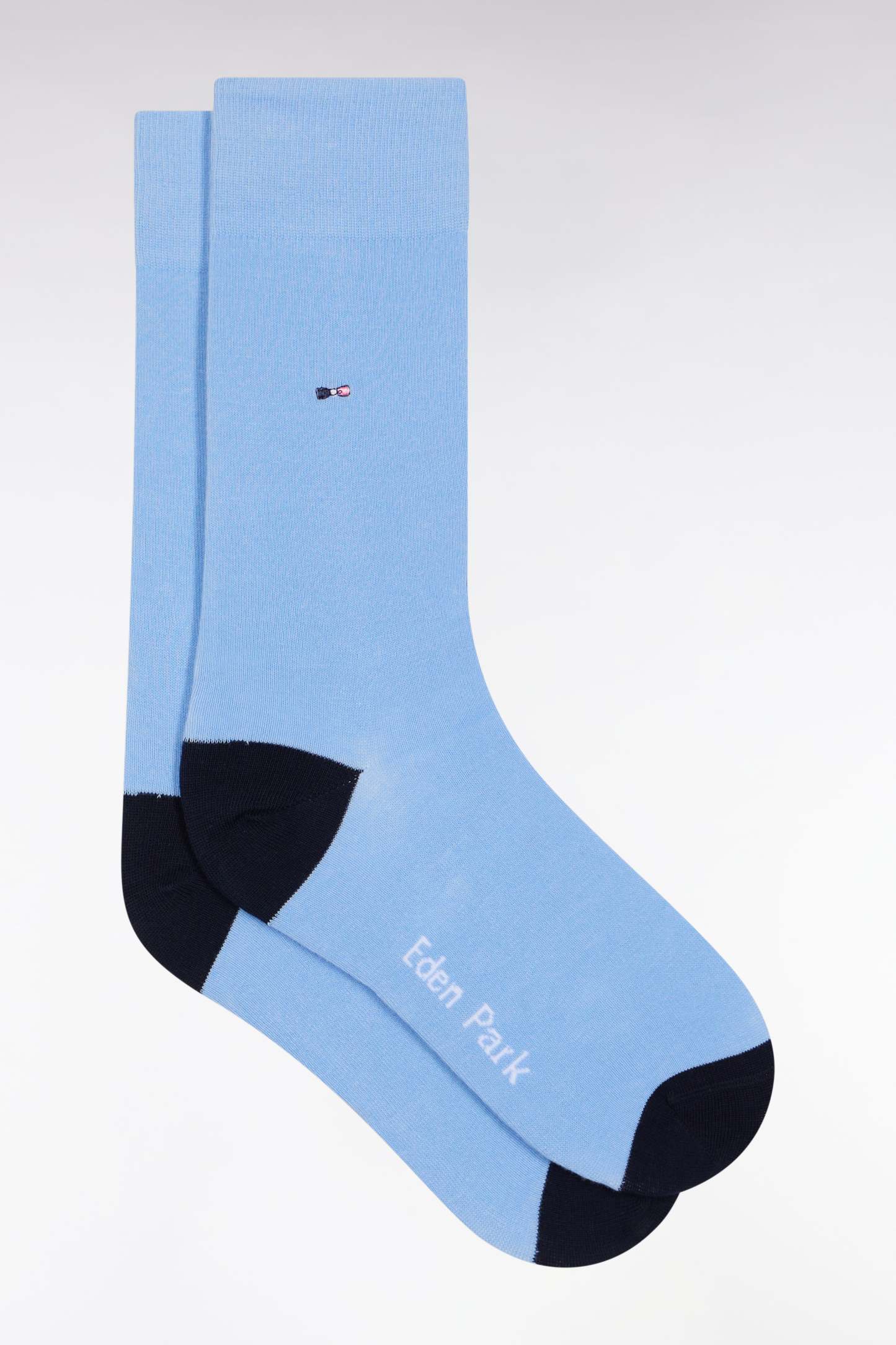 Derrière leur sobriété, ces chaussettes pour homme unies cachent une pointe et un talon colorés. Une note contrastée qui apporte une touche d’audace maîtrisée à un modèle classique. Sur la cheville, une petite broderie nœud papillon réalisée au fil rose souligne l'appartenance de cet accessoire au vestiaire Eden Park