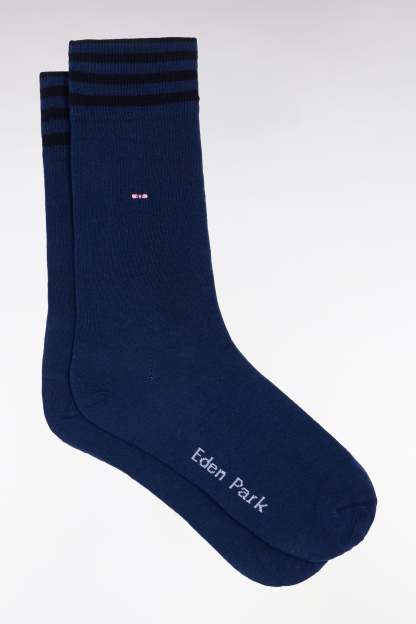 Chaussettes en coton stretch mélangée bleues à bordures rayées