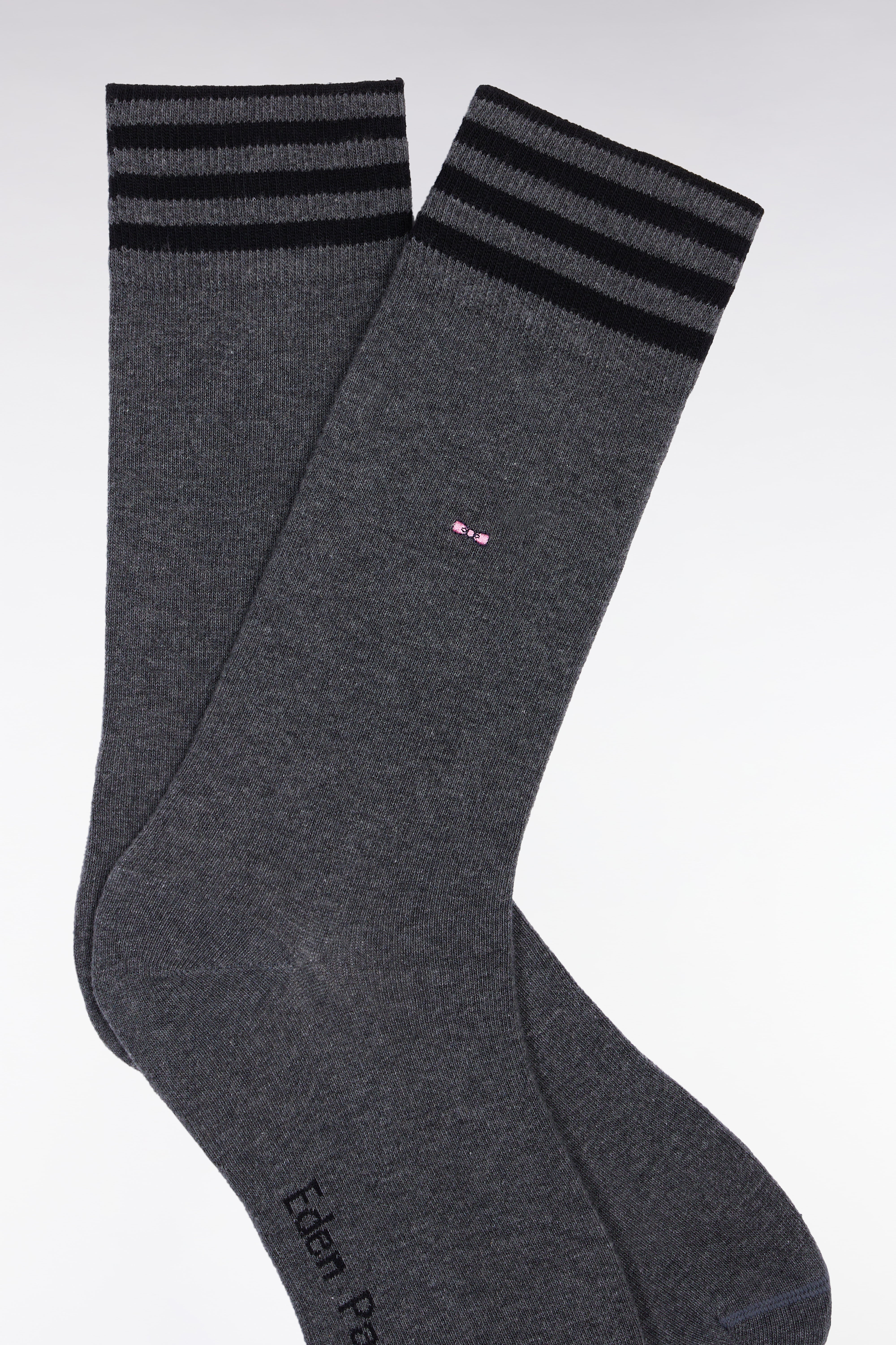 Chaussettes en coton stretch mélangée grises à bordures rayées