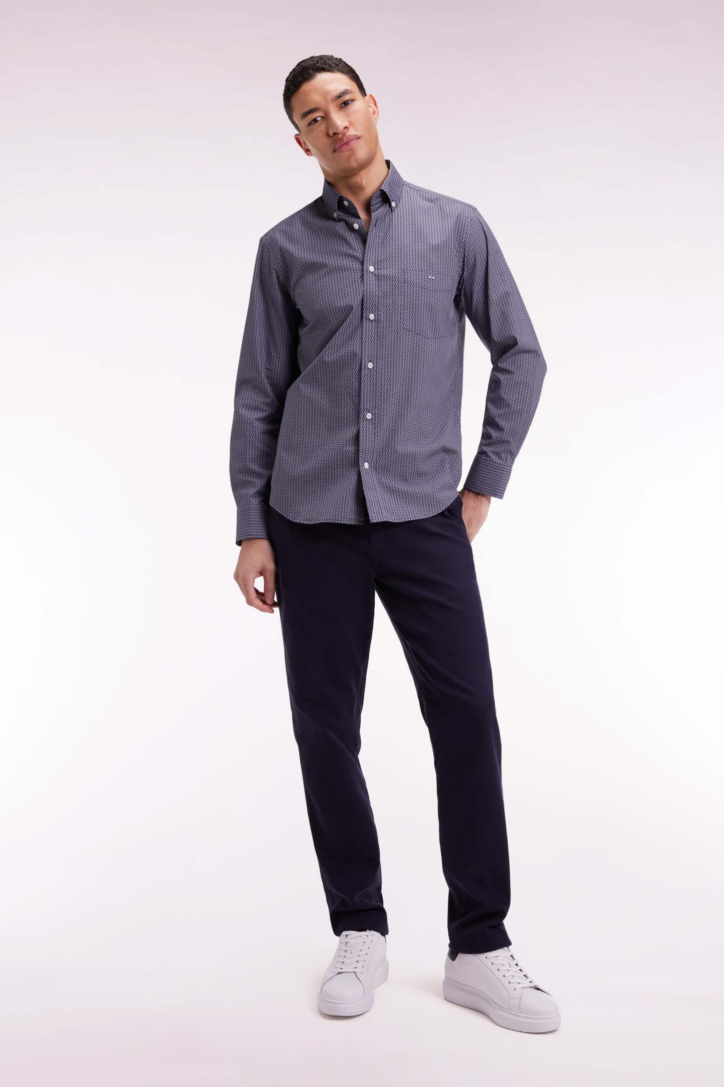 Inspirée de l’élégance French Flair du vestiaire masculin Eden Park, cette chemise révèle un micro-imprimé géométrique exclus If, inspiré de la forme de notre emblème : le nœud papillon. Une pièce élégante à porter du bureau jusqu'en soirée grâce à son étoffe 100% coton confortable qui garanti un tombé impeccable en toutes circonstances