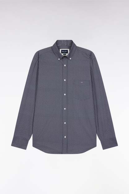 Chemise en coton marine à micro-motifs graphiques coupe droite