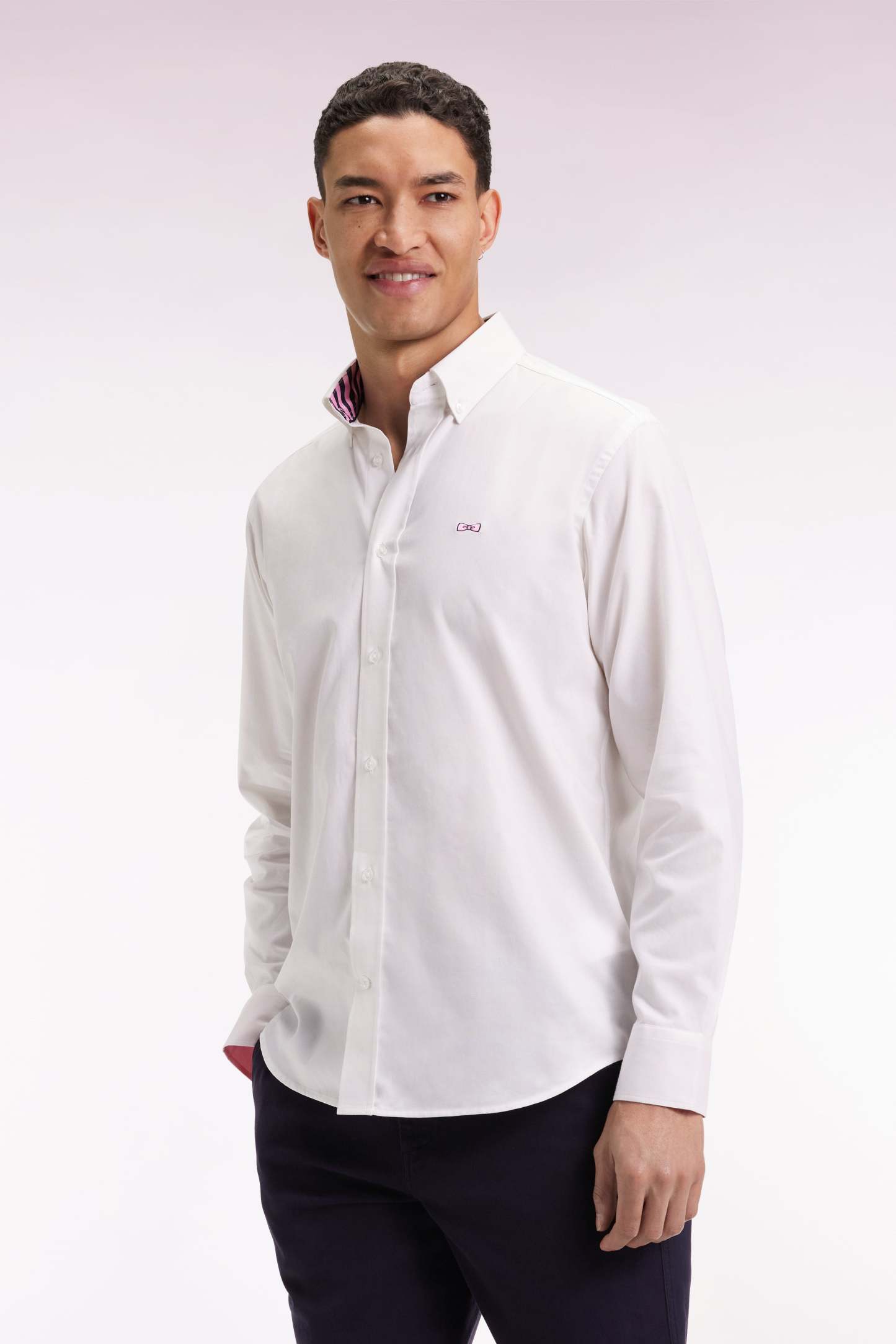 Chemise en coton pinpoint blanche broderie 10 dos coupe droite
