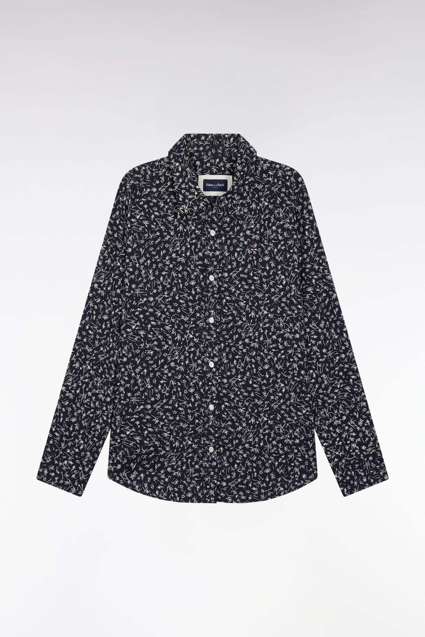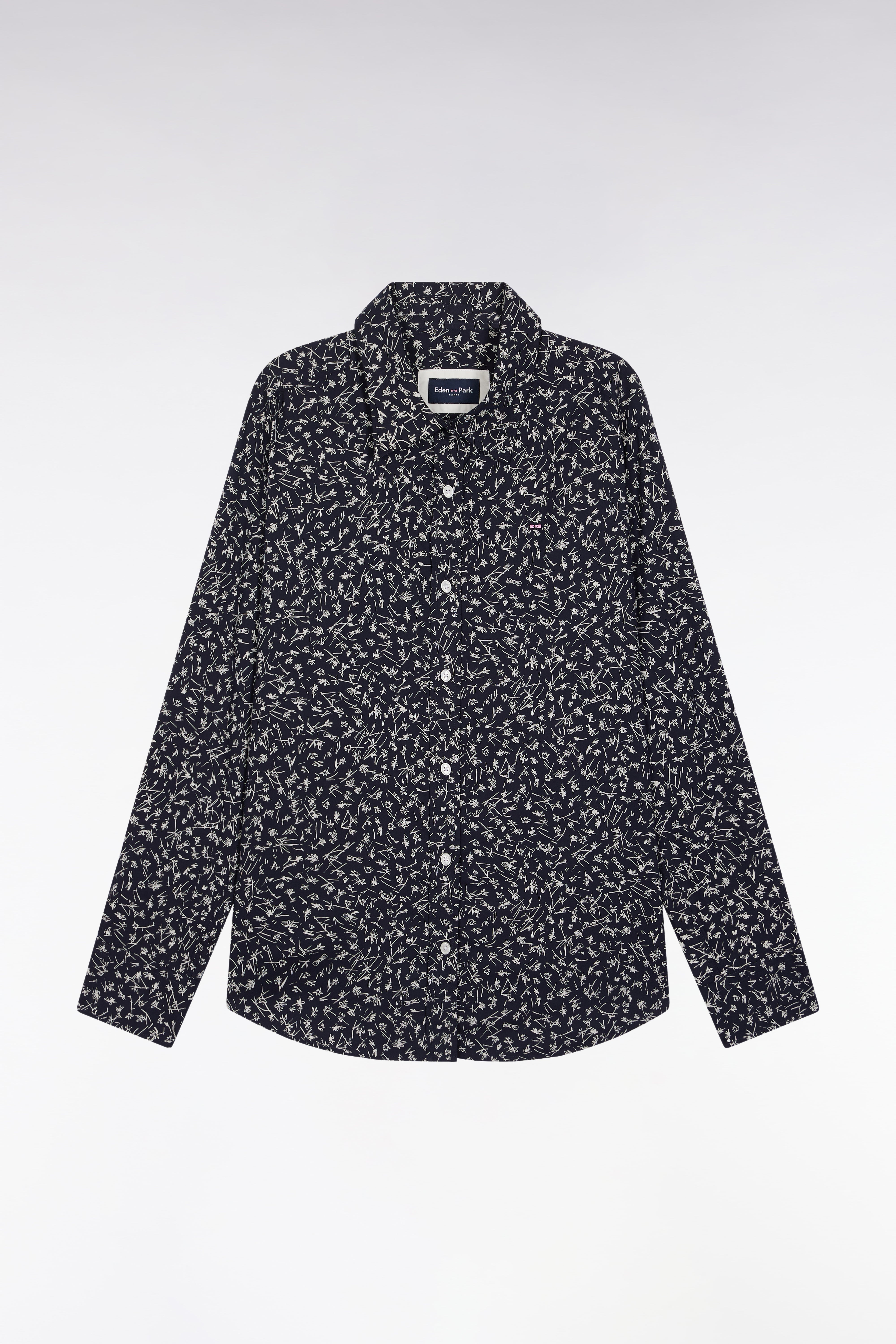 Chemise en popeline de coton marine à micro-motifs coupe slim