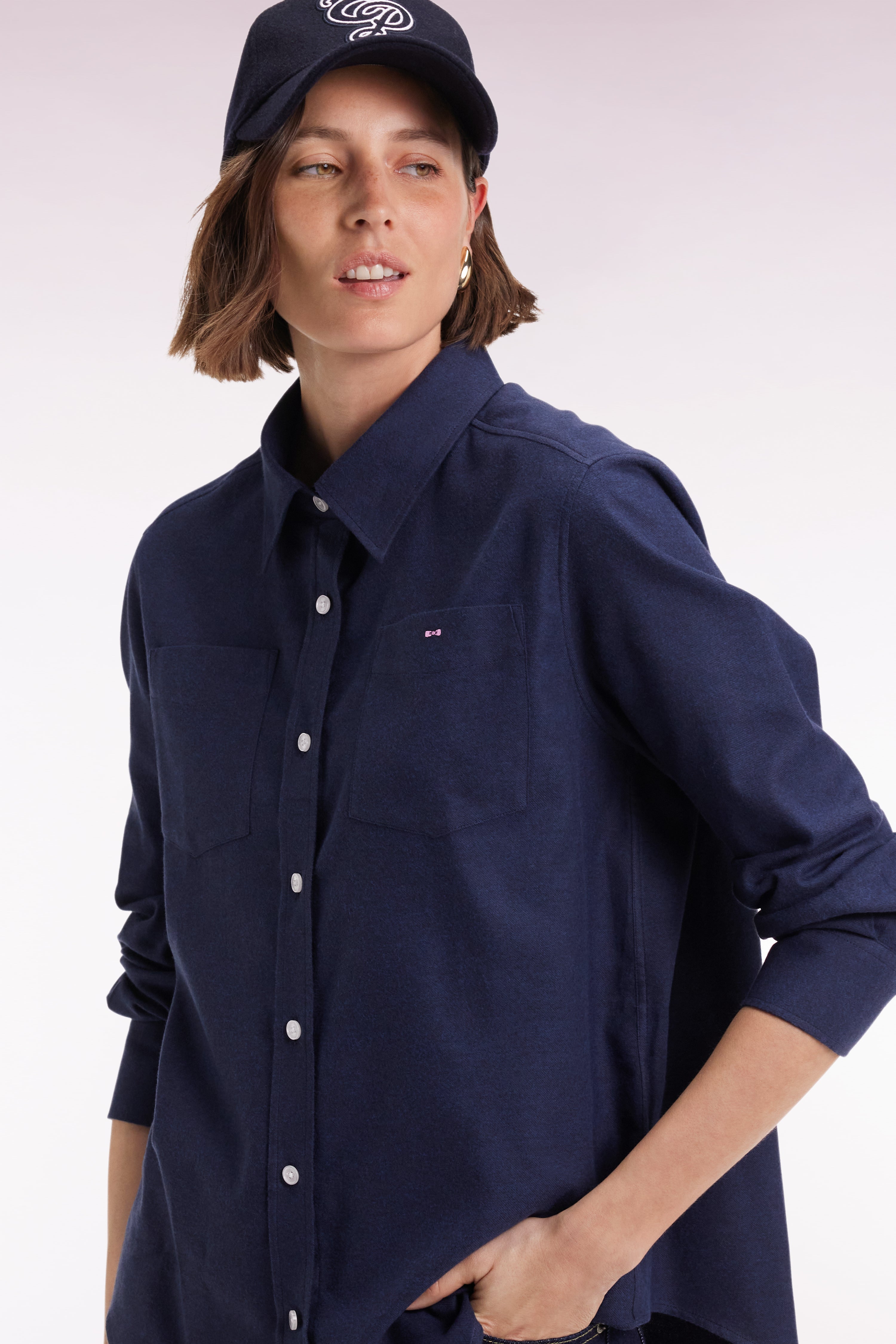 Cette chemise femme en popeline de coton marine ou écru adopte une coupe Relaxed légèrement ample et deux poches plaquées pour une allure résolument contemporaine. Une pièce intemporelle facile à mixer à votre vestiaire, entre chic épuré et décontraction maîtrisée
