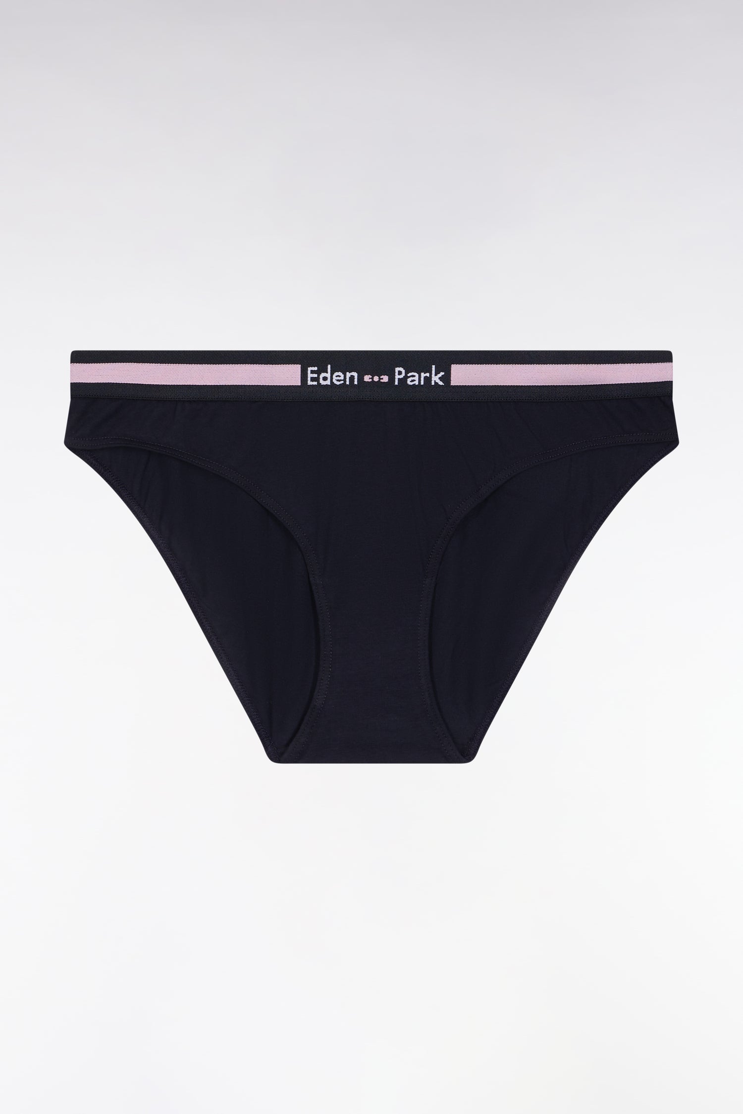 Cette culotte femme en confortable jersey stretch se distingue par son élastique siglé Eden Park égayé par une bande rose ou blanche selon le coloris choisi. Proposée en coloris gris ou en marine, cette culotte promet soutien et douceur, au quotidien, pour vos moments de détente ou vos séances de sport
