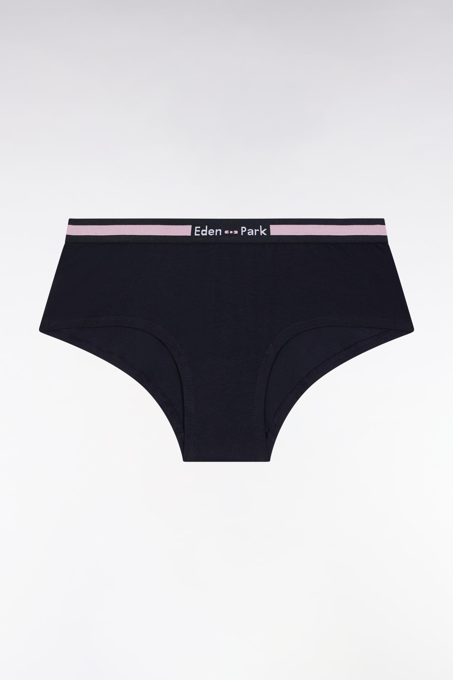 Avec son échancrure seyante, cette culotte shorty met parfaitement en valeur les formes féminines. Confectionné en jersey stretch, ce sous-vêtement femme doux et confortable deviendra l'un de vos essentiels. Ce shorty en coton est proposé en marine ou en gris et orné de détails contrastés sur son élastique siglé