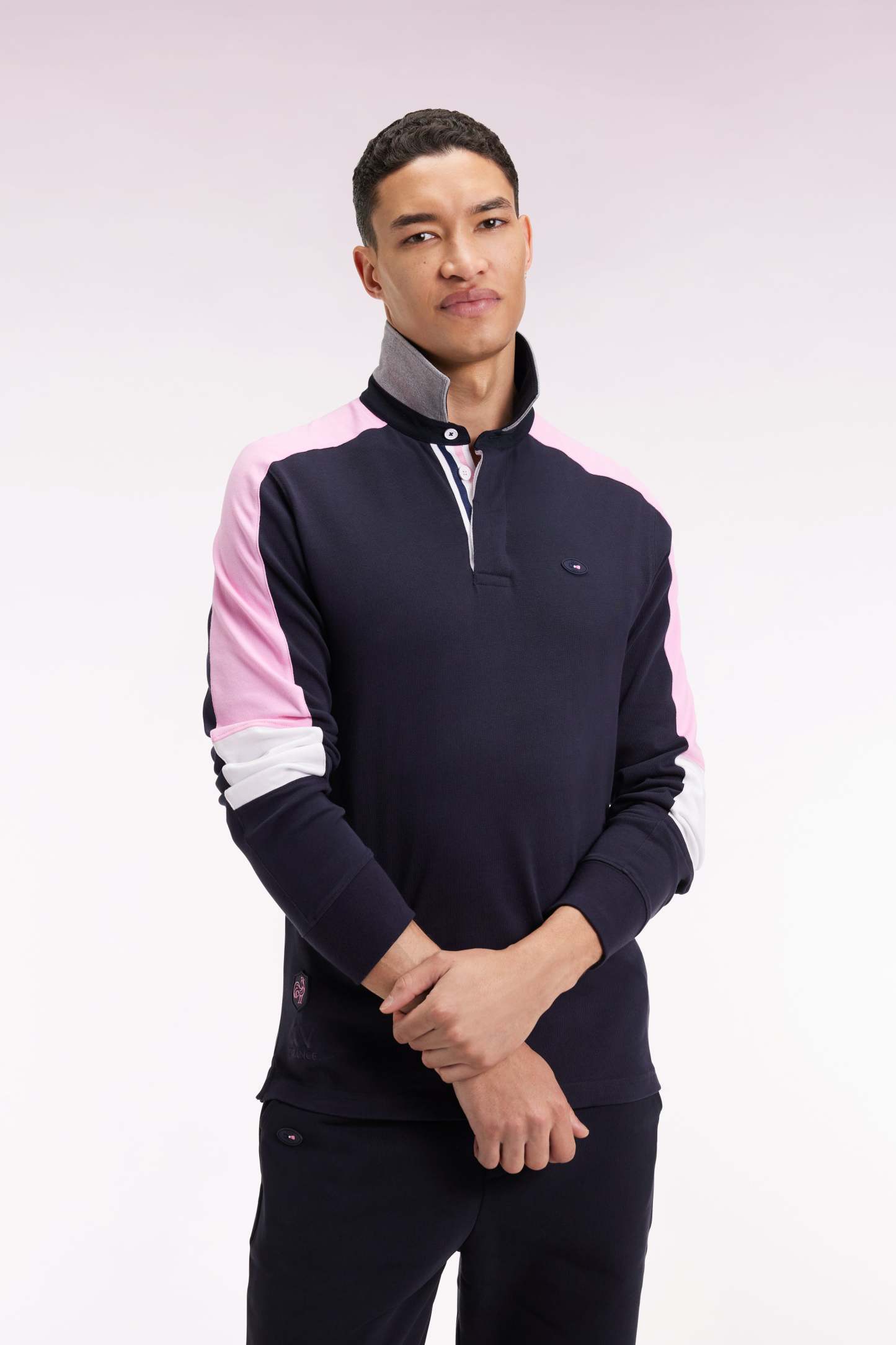 Jeux de couleurs iconiques, broderie dos d'inspiration rugby et finitions soignées : ce maillot manches longues en coton sait se faire remarquer. Jean ou jogging, ce modèle se prêtera à toutes vos envies stylistiques, apportant un twist sport-chic aux silhouettes les plus minimalistes