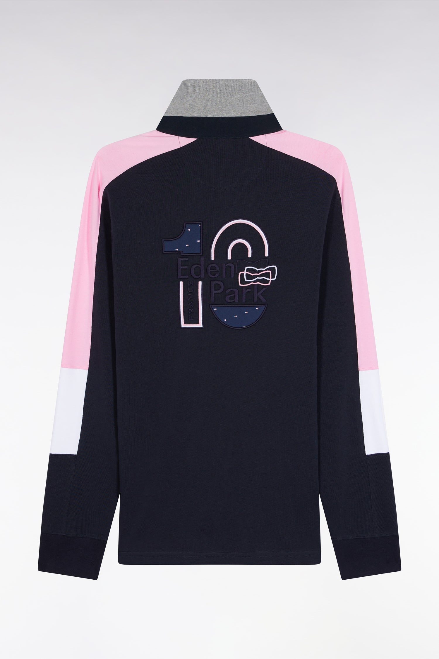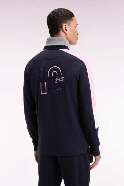 Maillot à manches longues brodé marine manches découpes tricolores coupe droite