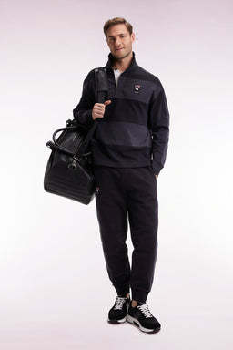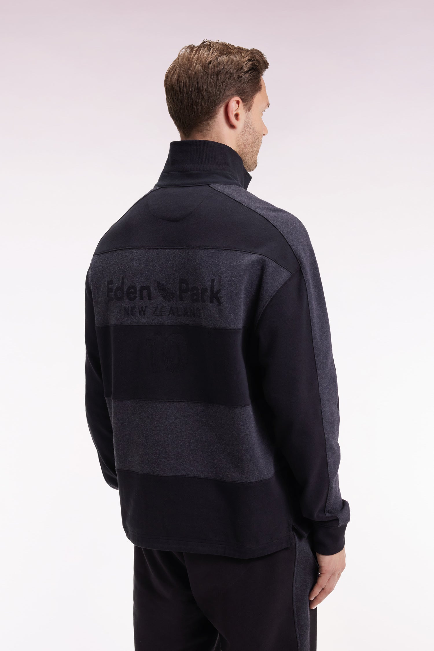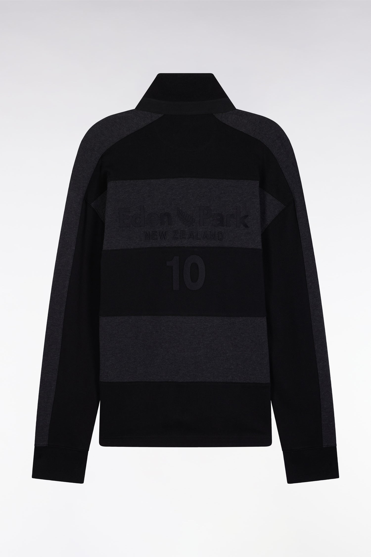 En noir et gris ou gris et beige, ce maillot à manches longues en jersey épais à la coupe ample revisite l’esprit des tenues de rugby avec ses rayures coupées-cousues et son design affirmé. Le dos est orné d’une broderie New Zealand signature, tandis que les finitions contrastées en twill et bords-côtes renforcent son style sport chic hommage à la Nouvelle Zélande, terre de prédilection du rugby. Un modèle à porter avec un jean ou avec son jogging coordonné