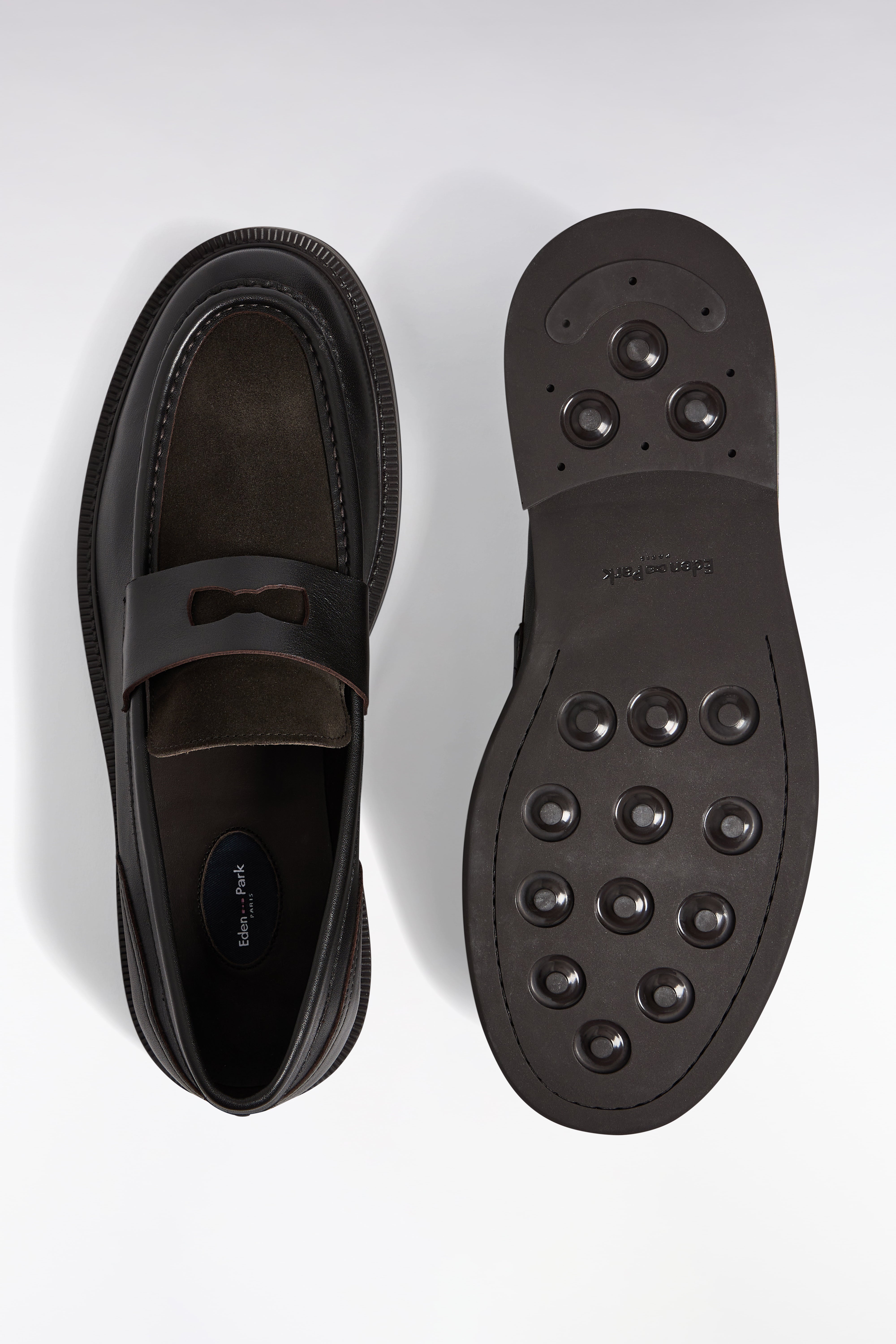 Mocassins bimatières en cuir marron