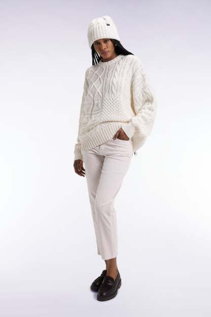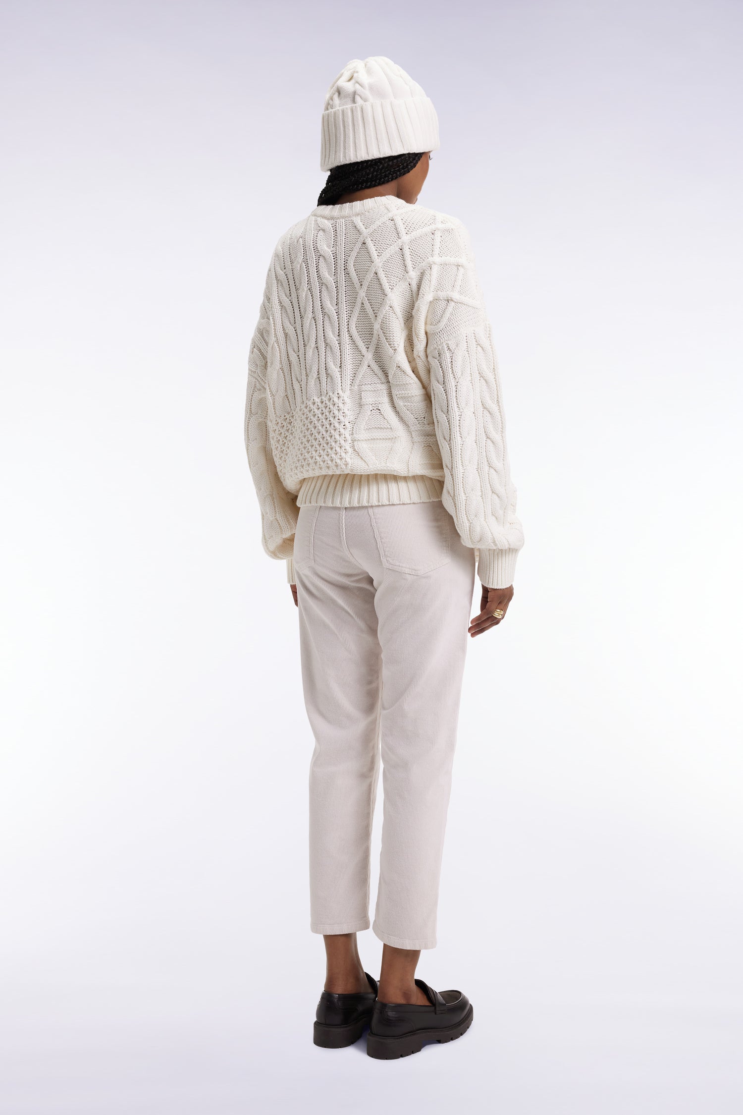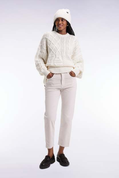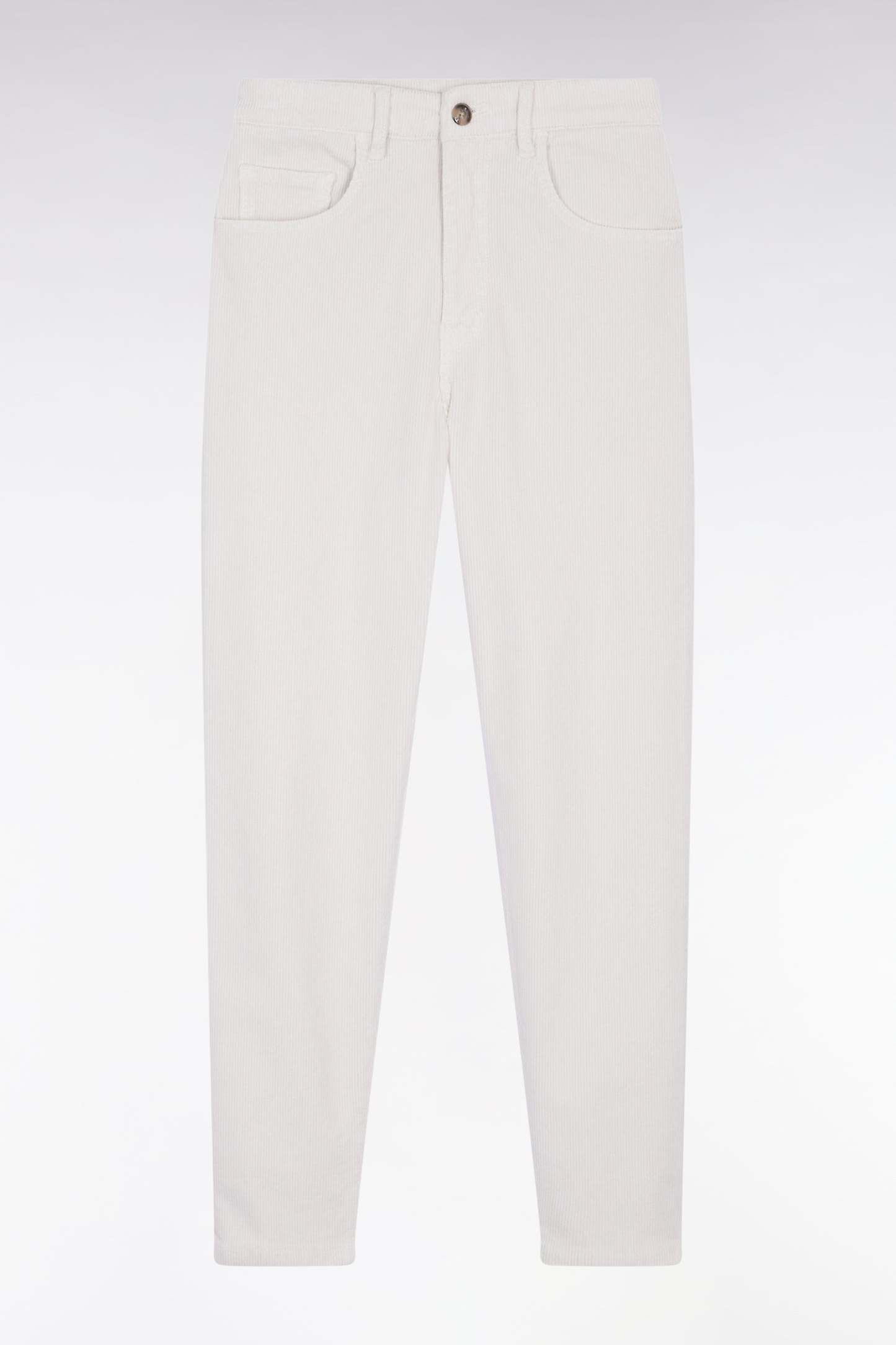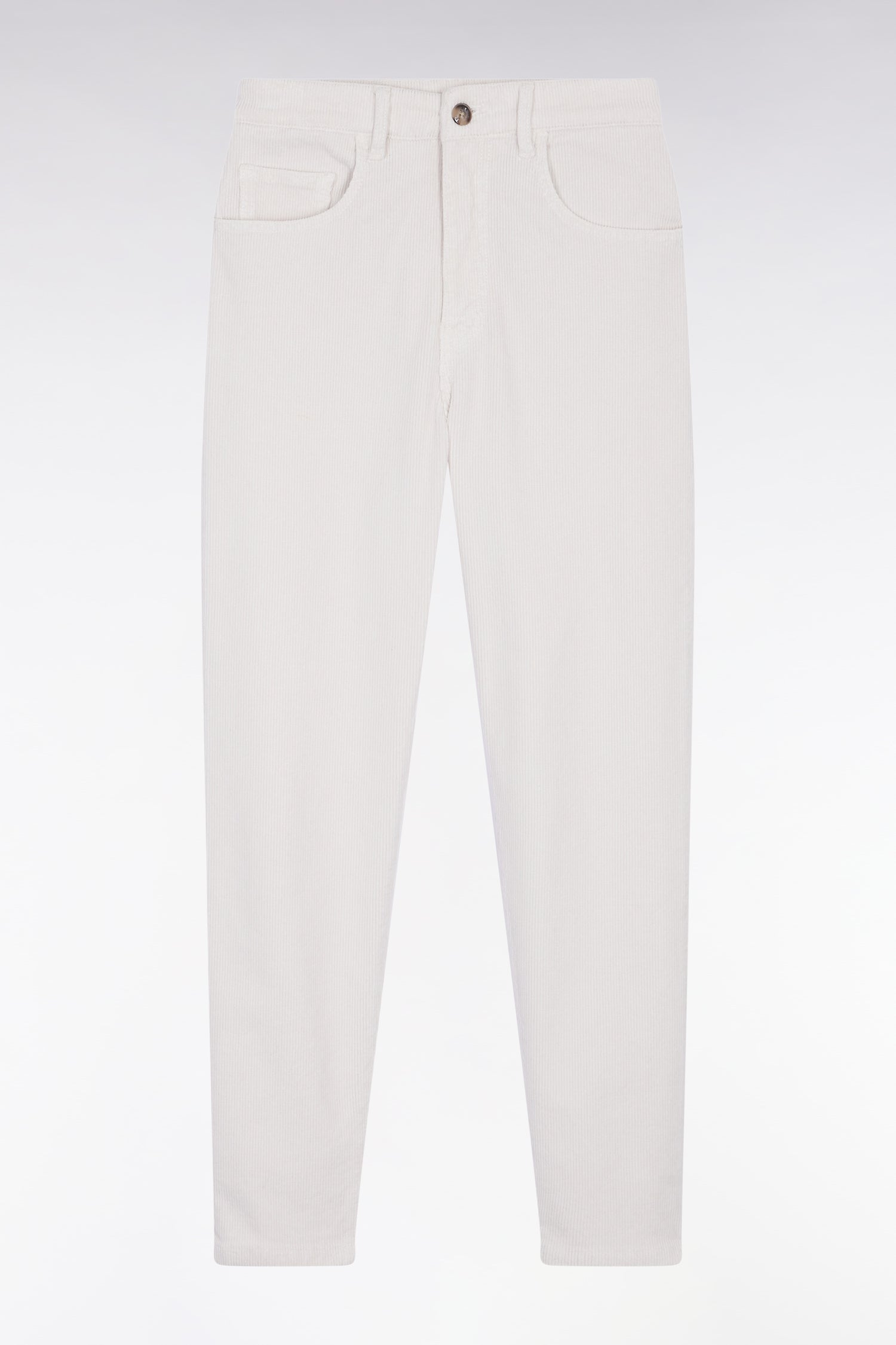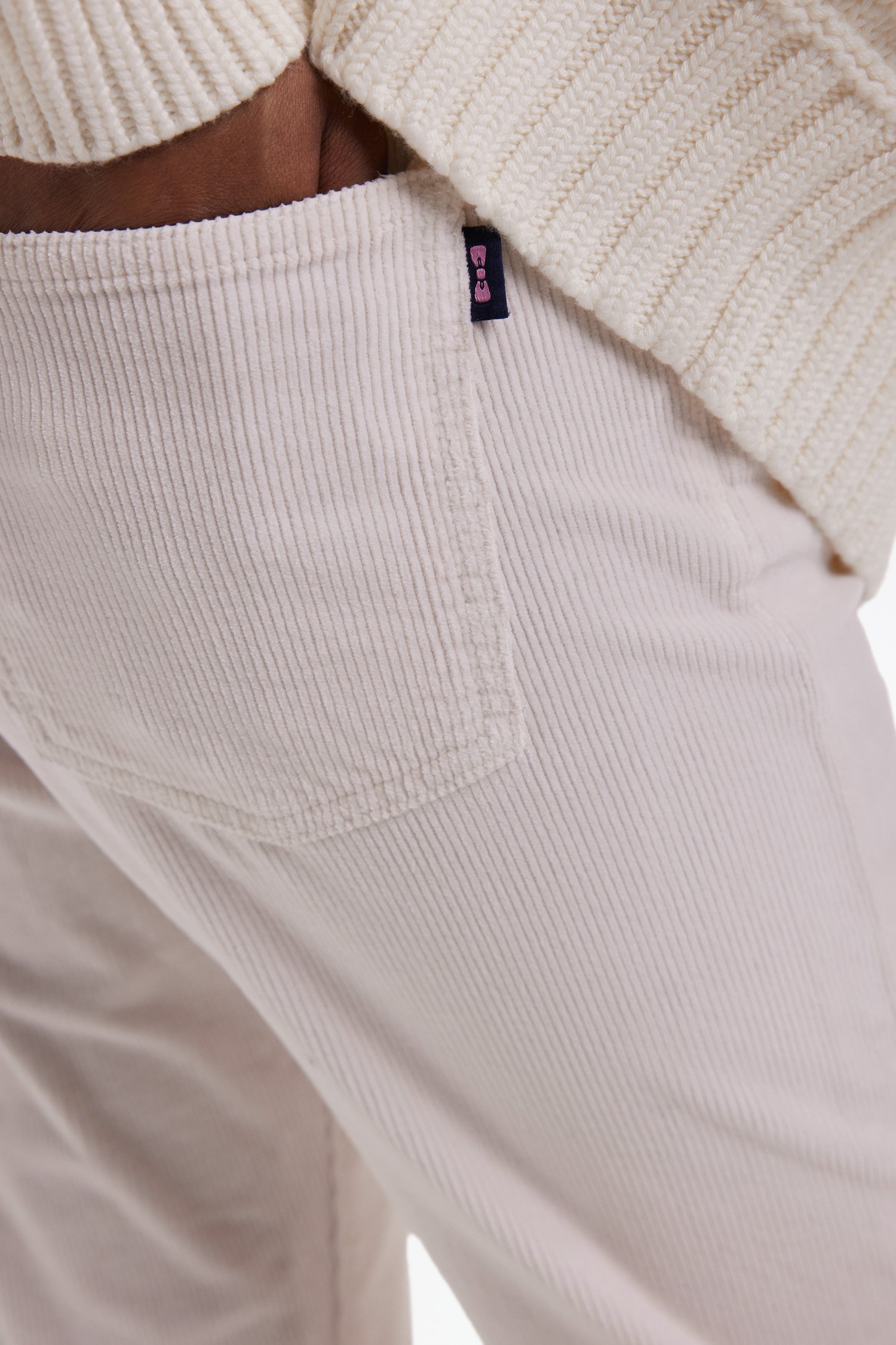 Alternative chic décontractée au denim, ce pantalon 5 poches en velours côtelé se décline en écru ou noir pour une allure workwear tout en douceur. Sa longueur 7/8 et sa coupe ajustée en font une pièce facile à porter, idéale pour traverser l’automne-hiver avec style