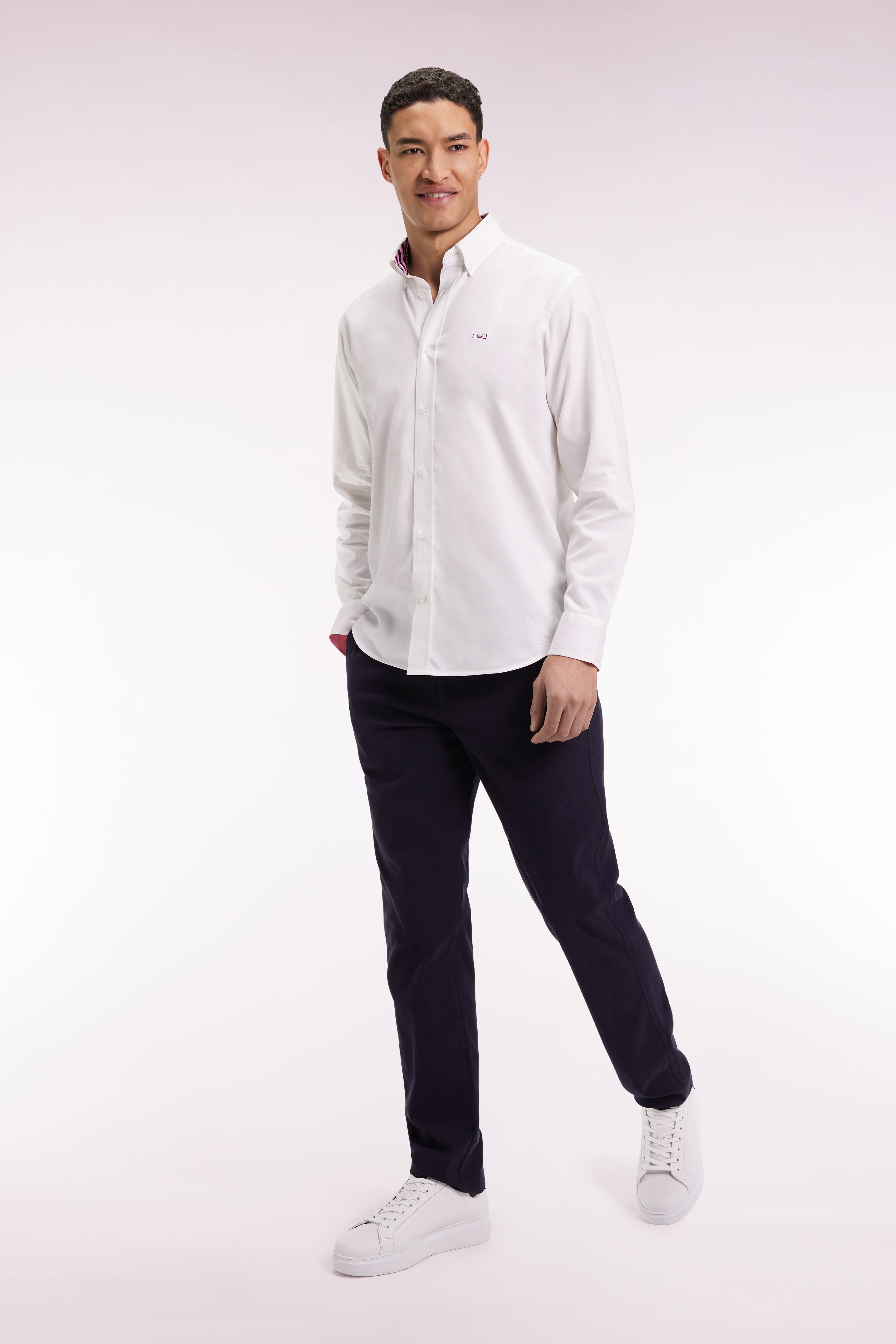 Avec son relief discret et son toucher texturé, ce chino en coton piqué revisite le pantalon chino dans une version plus raffinée. Léger et légèrement extensible, il offre une coupe droite sans pli qui suit naturellement les mouvements du quotidien tout en dessinant une silhouette soignée. Un modèle intemporel et polyvalent offert en noir ou en marine pour imaginer une infinité de tenues.