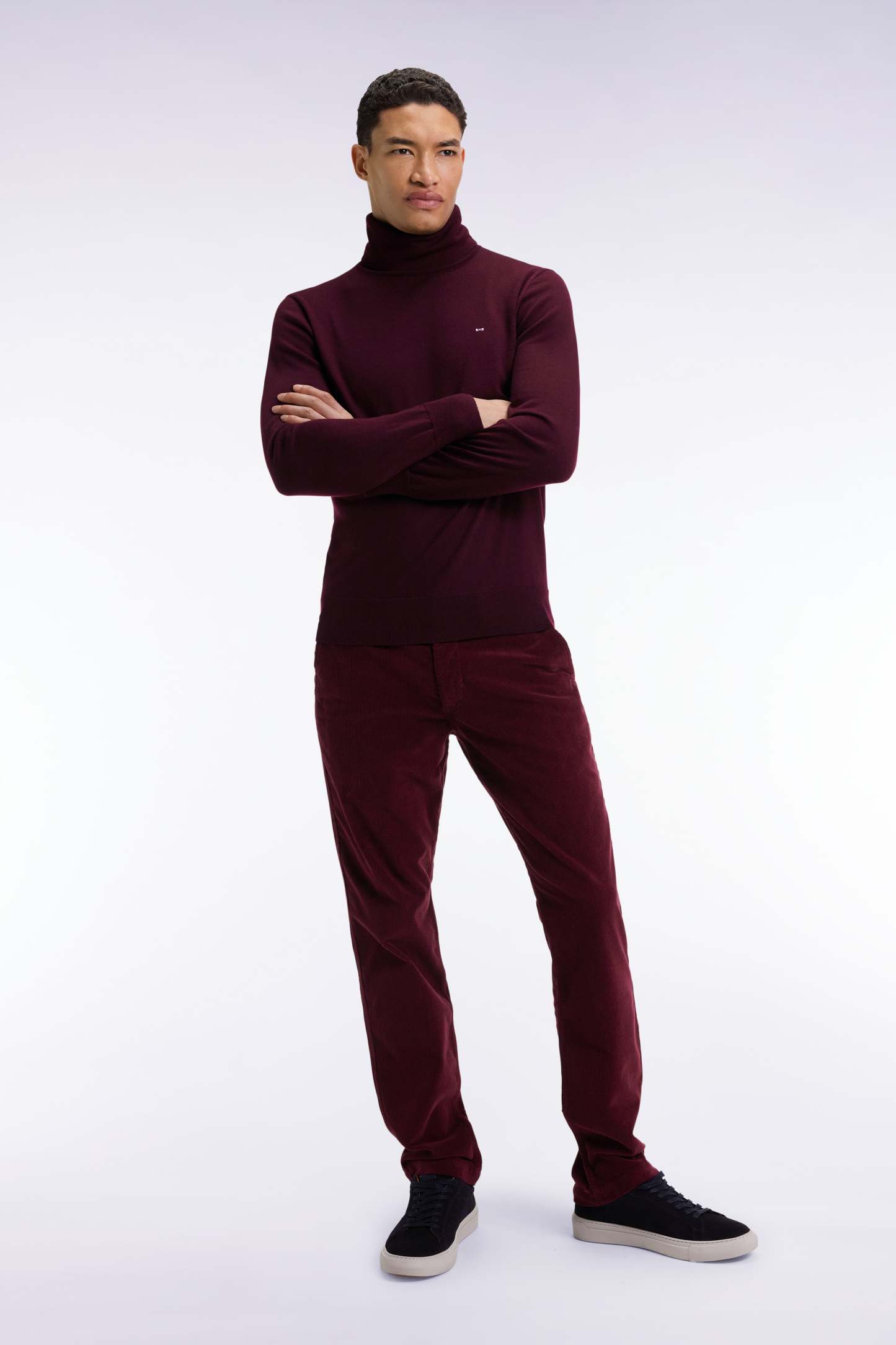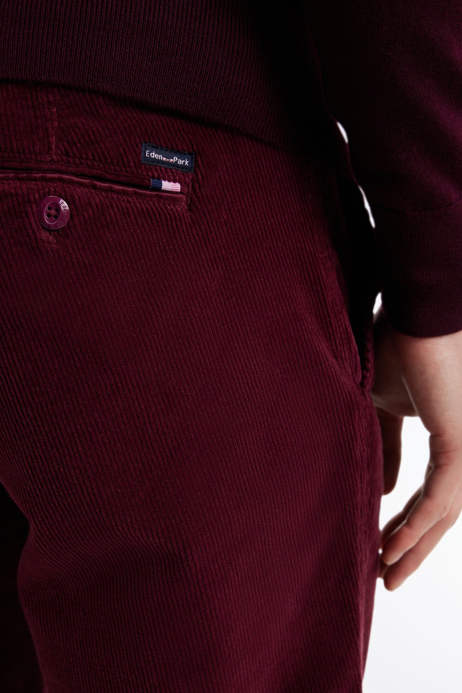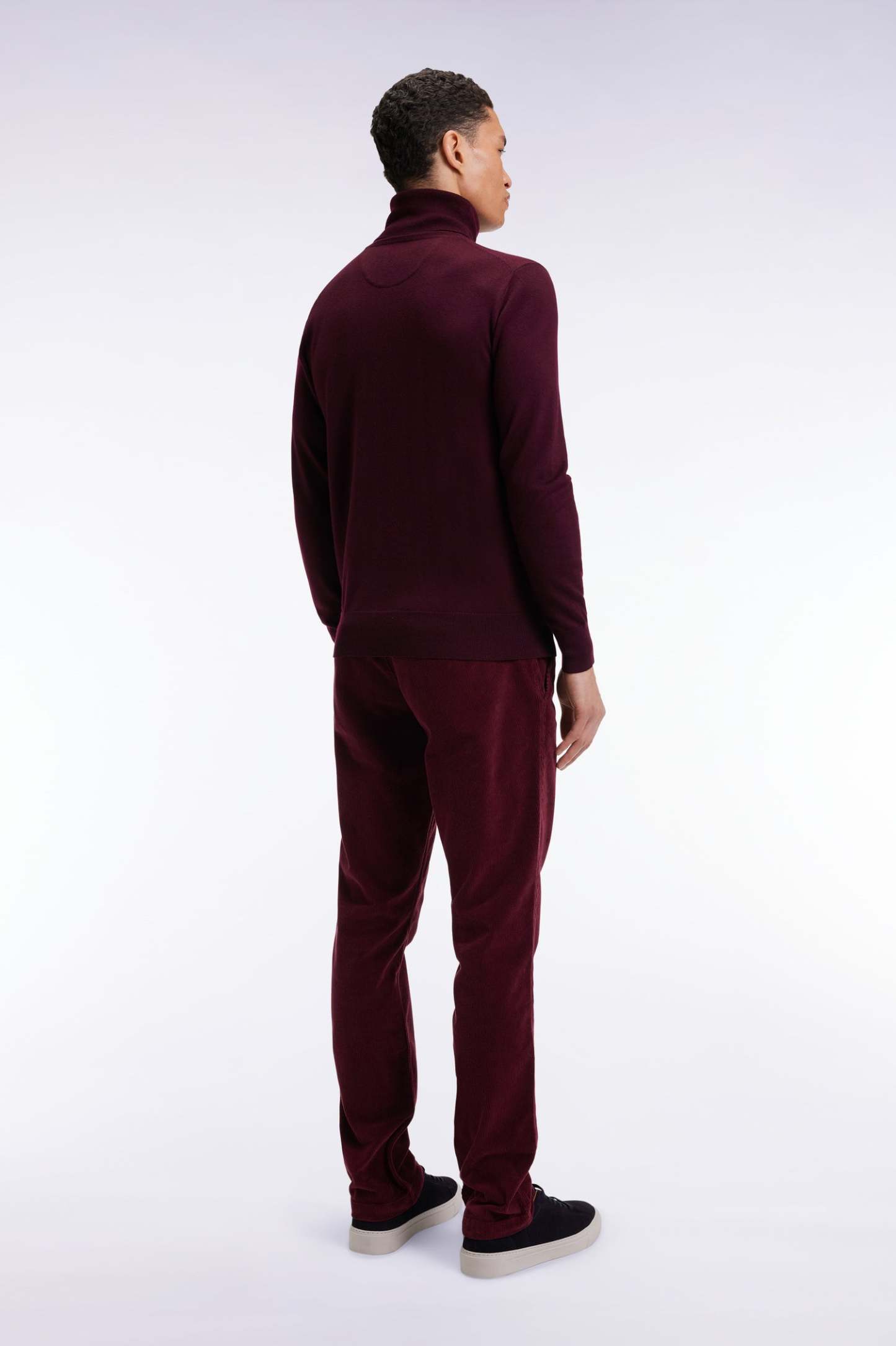 Pantalon chino sans plis en velours stretch bordeaux