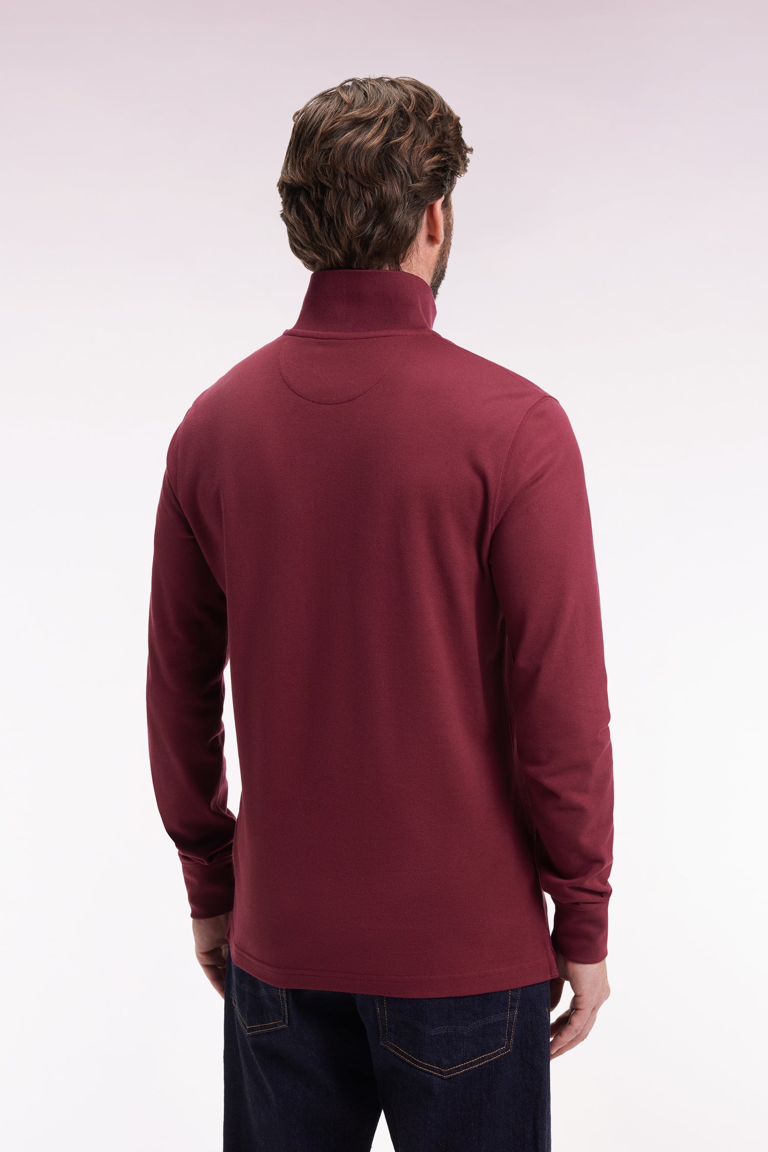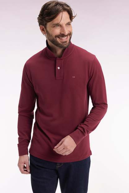 Polo à manches longues en coton Pima bordeaux coupe droite