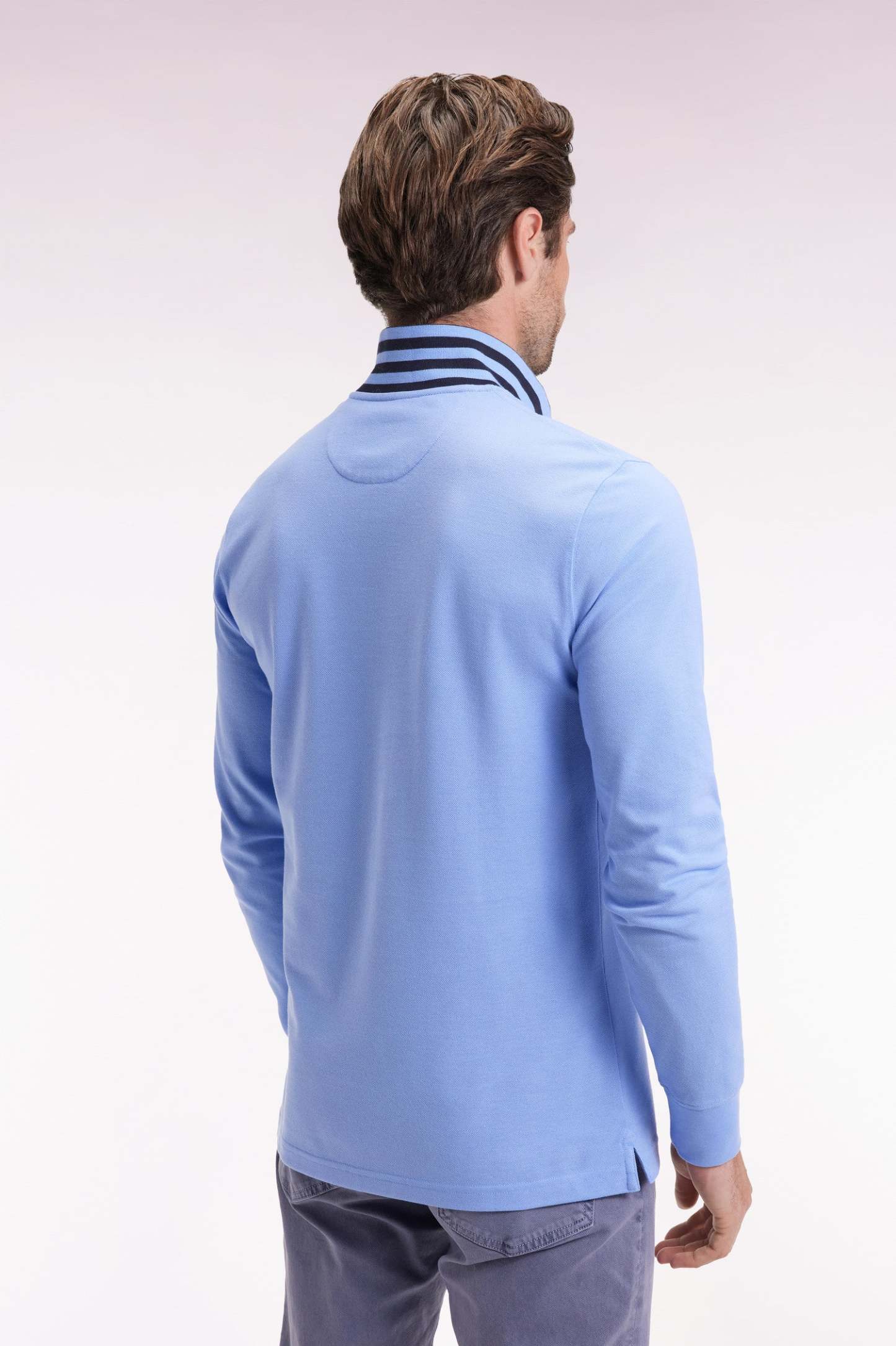 Polo à manches longues en piqué coton ciel dessous de col rayé