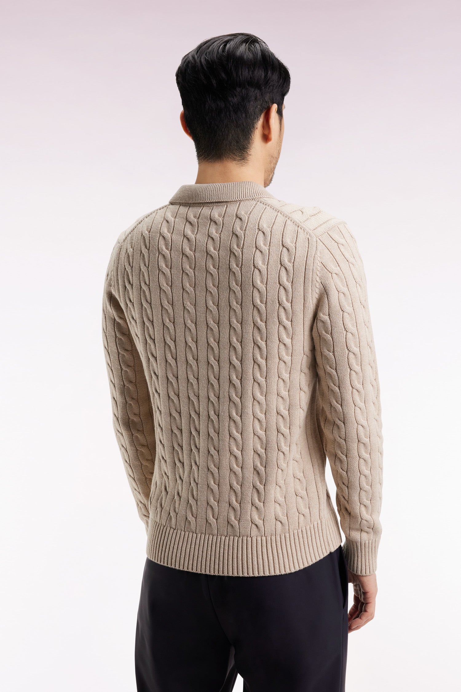 Cet élégant pull col maillot se distingue par son tricotage intégral, alternant torsades, côtes plates et points texturés dans une construction sans couture rapportée. Un véritable exercice de style et de savoir-faire, qui révèle tout le soin porté aux finitions et à l’allure. Décliné dans 2 coloris élégants, ce pull masculin incarne une version contemporaine et raffinée de l’inspiration rugby chère à notre maison française. Une pièce qui équilibre subtilement héritage sportif et confort contemporain