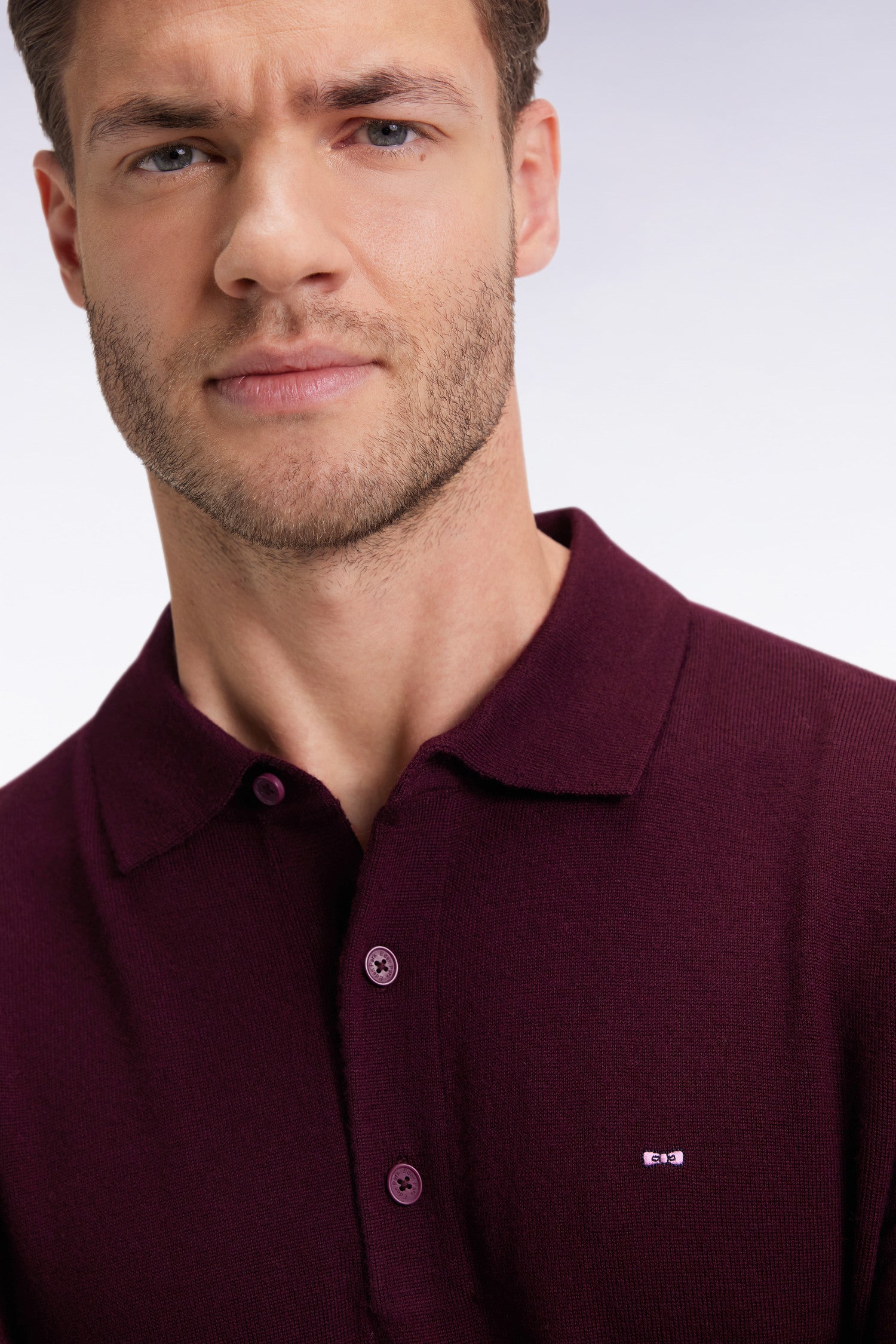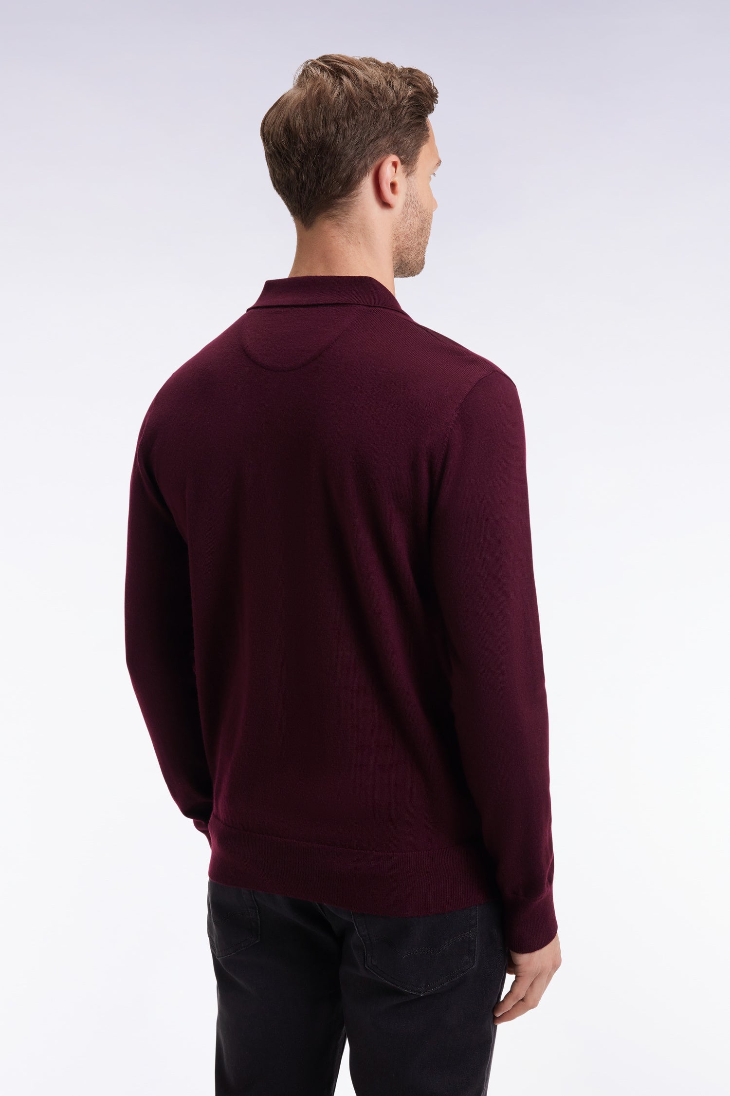 Pull col maillot en laine mérinos bordeaux