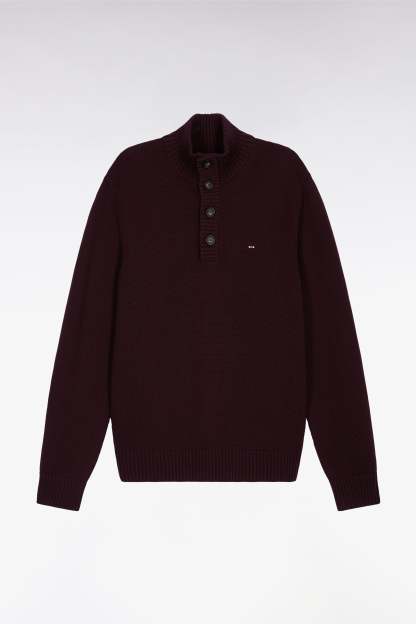 Pull col montant épais en laine et coton bordeaux