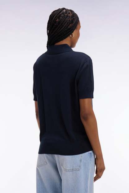 Pull polo à manches courtes en coton et soie mélangés marine coupe regular