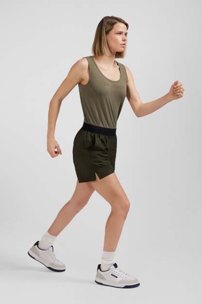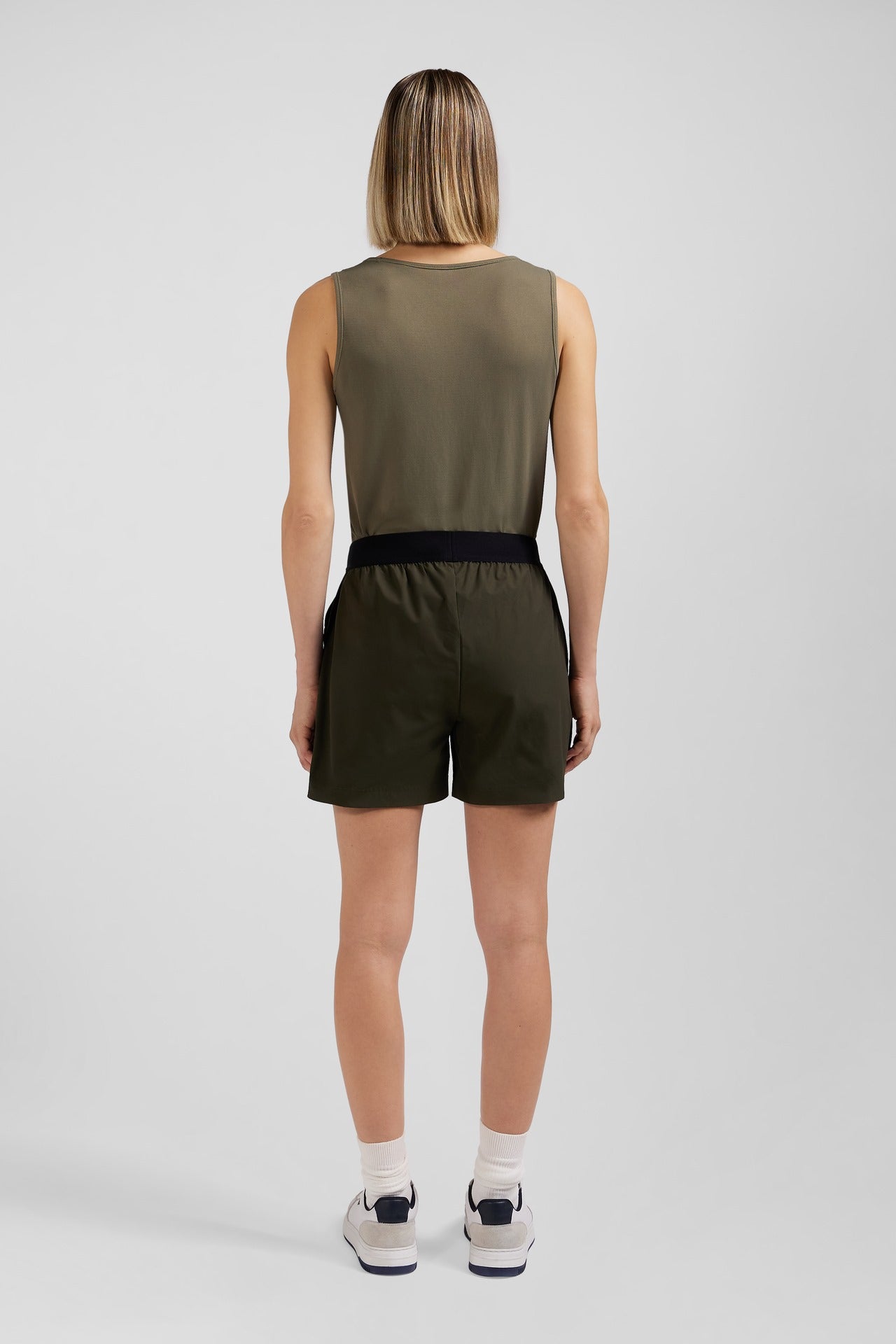 Ce short de sport marine est une pièce incontournable du vestiaire athlétique féminin. Idéal pour une multitude d'activités sportives ou pour un look décontracté, ce short femme intègre une sérigraphie distinctive en bas de jambe, ajoutant une touche d'originalité et de style. Léger et respirant, ce short de sport kaki est parfait pour les entraînements intenses ou les journées ensoleillées, offrant à la fois fonctionnalité et élégance. Portez-le avec son débardeur assorti ou avec le T-shirt de sport aux manches rayées issu de la même collection capsule exclusivement proposée sur notre site.