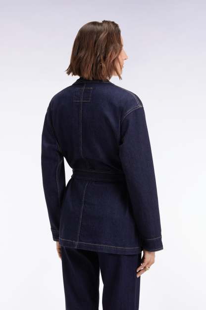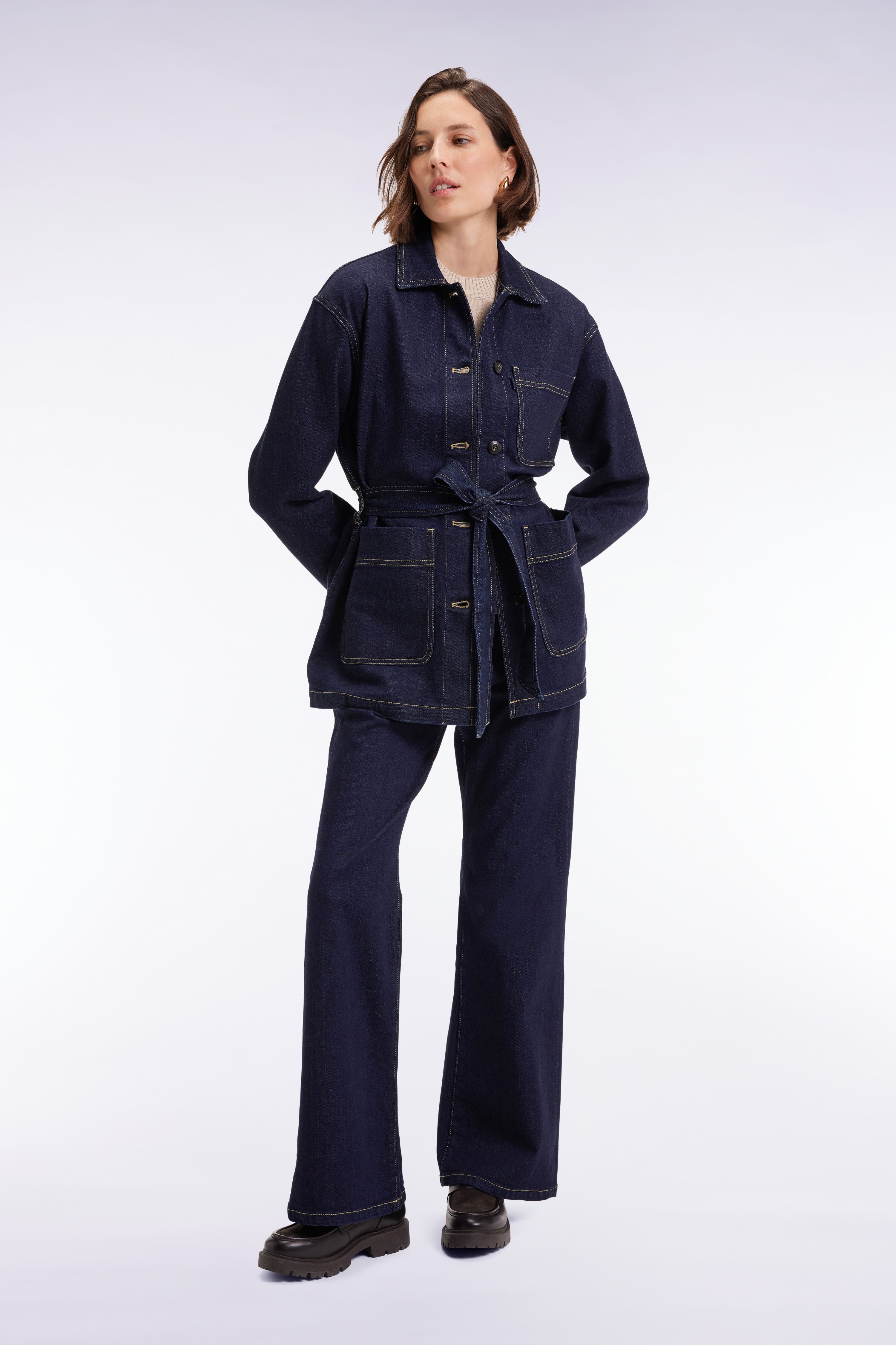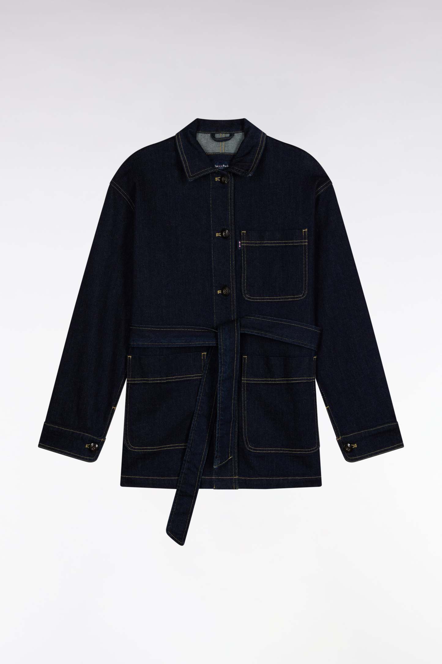 Surchemise ceinturée en denim stretch brut coupe Oversized