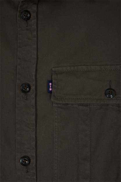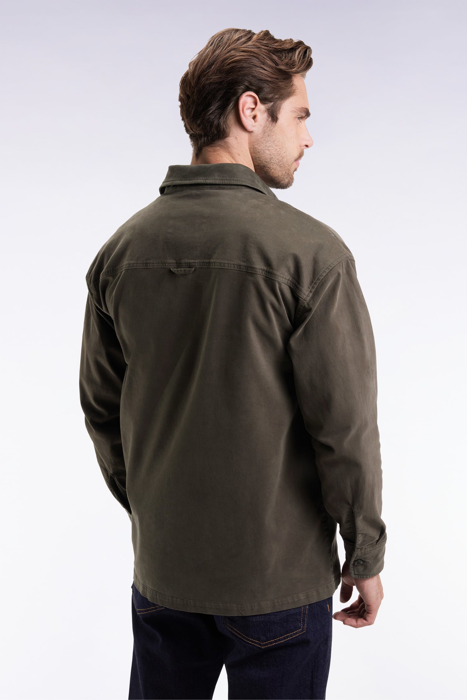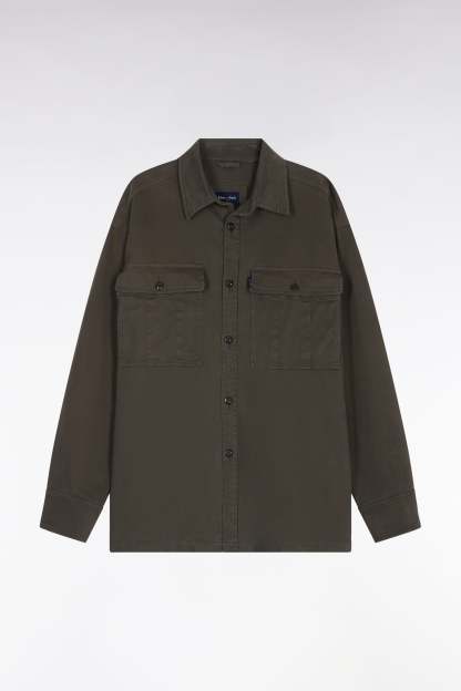 Surchemise en twill de coton stretch kaki à poches plaquées