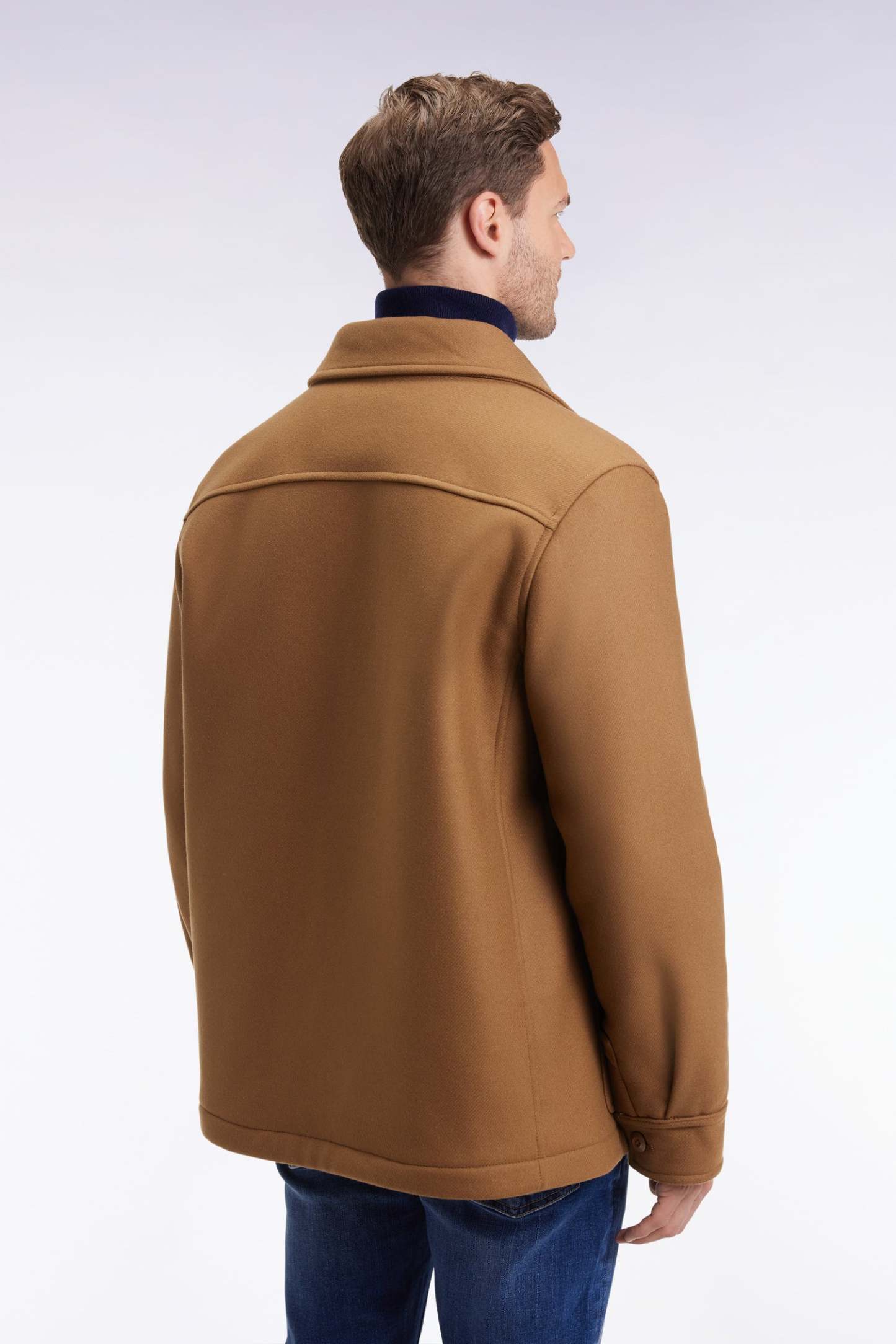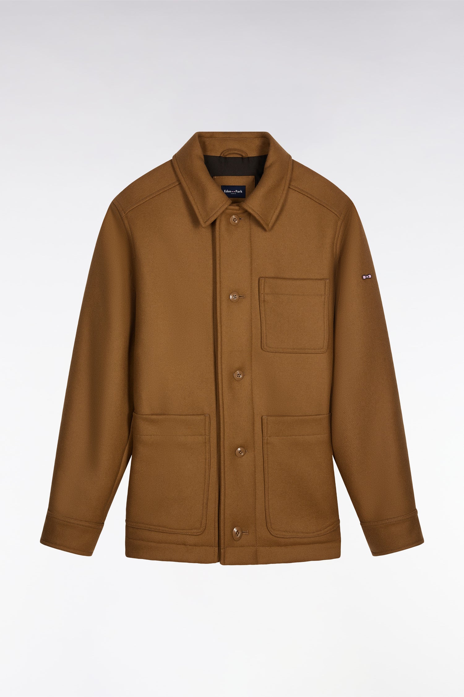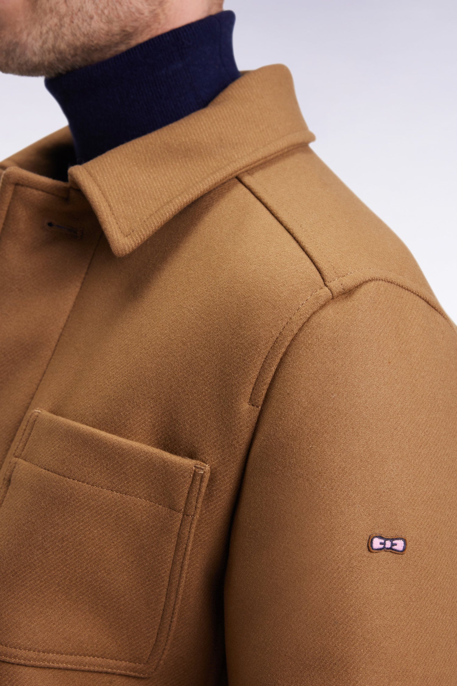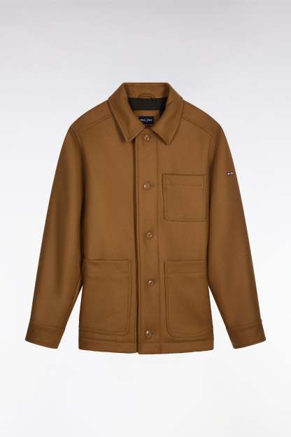 Surchemise en twill de laine camel à poches plaquées