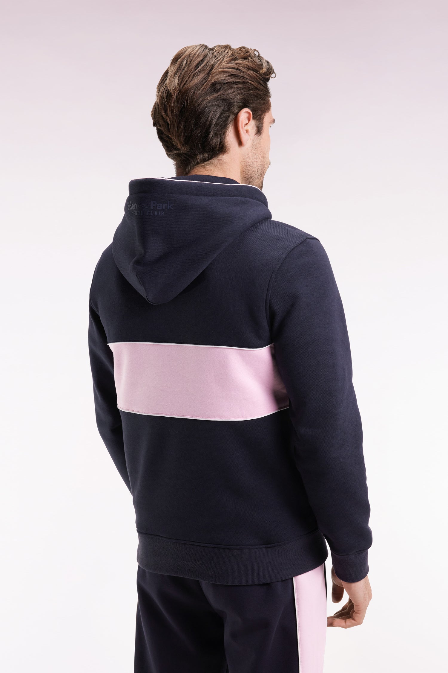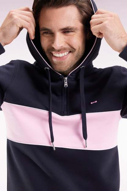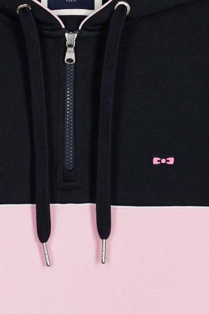 Sweatshirt à capuche semi-zippé marine et rose