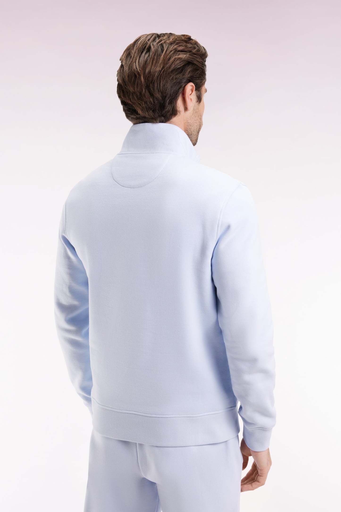 Sweatshirt à col montant zippé en molleton coton ciel