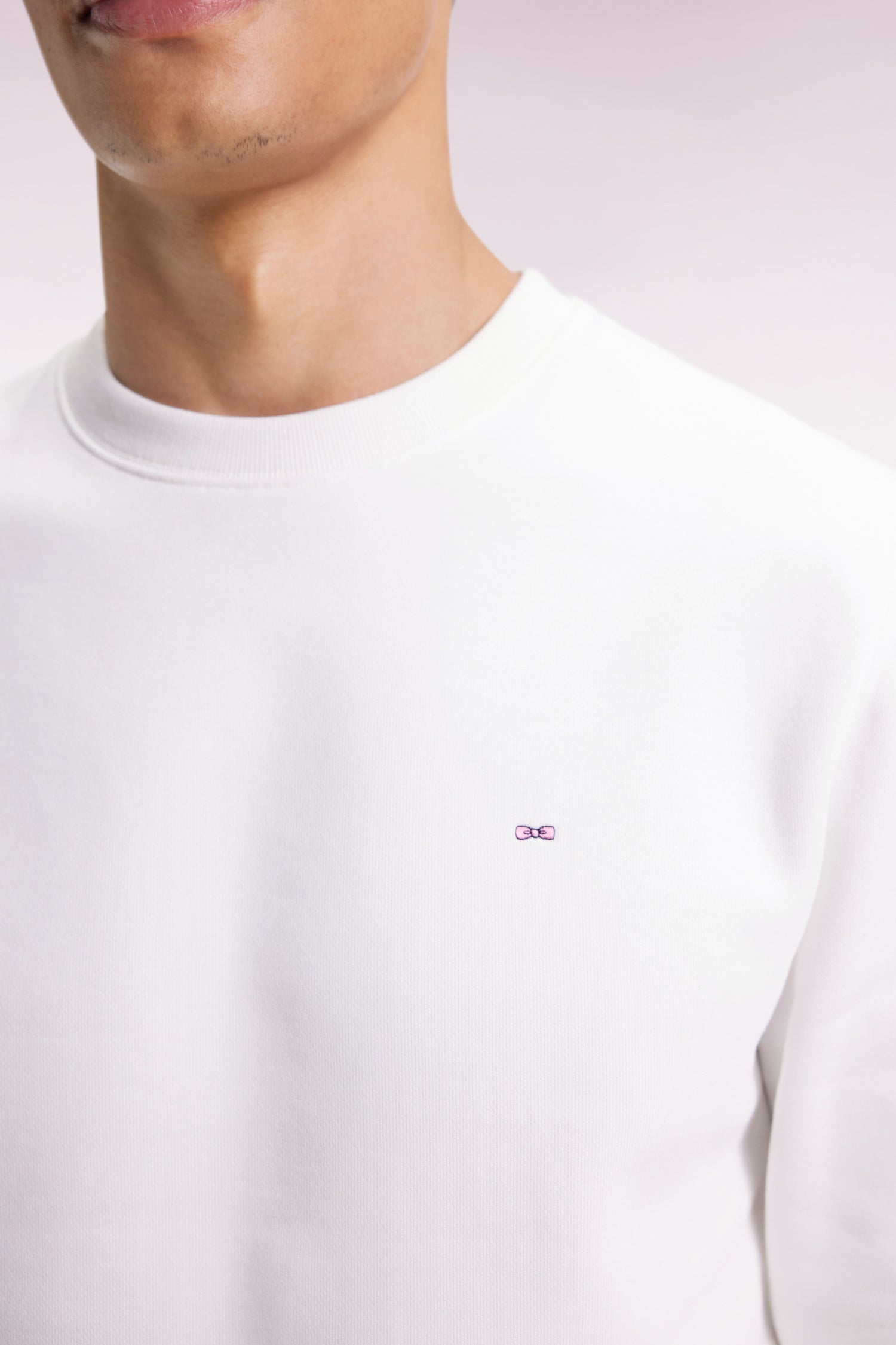Sweatshirt à col rond en coton blanc coupe droite