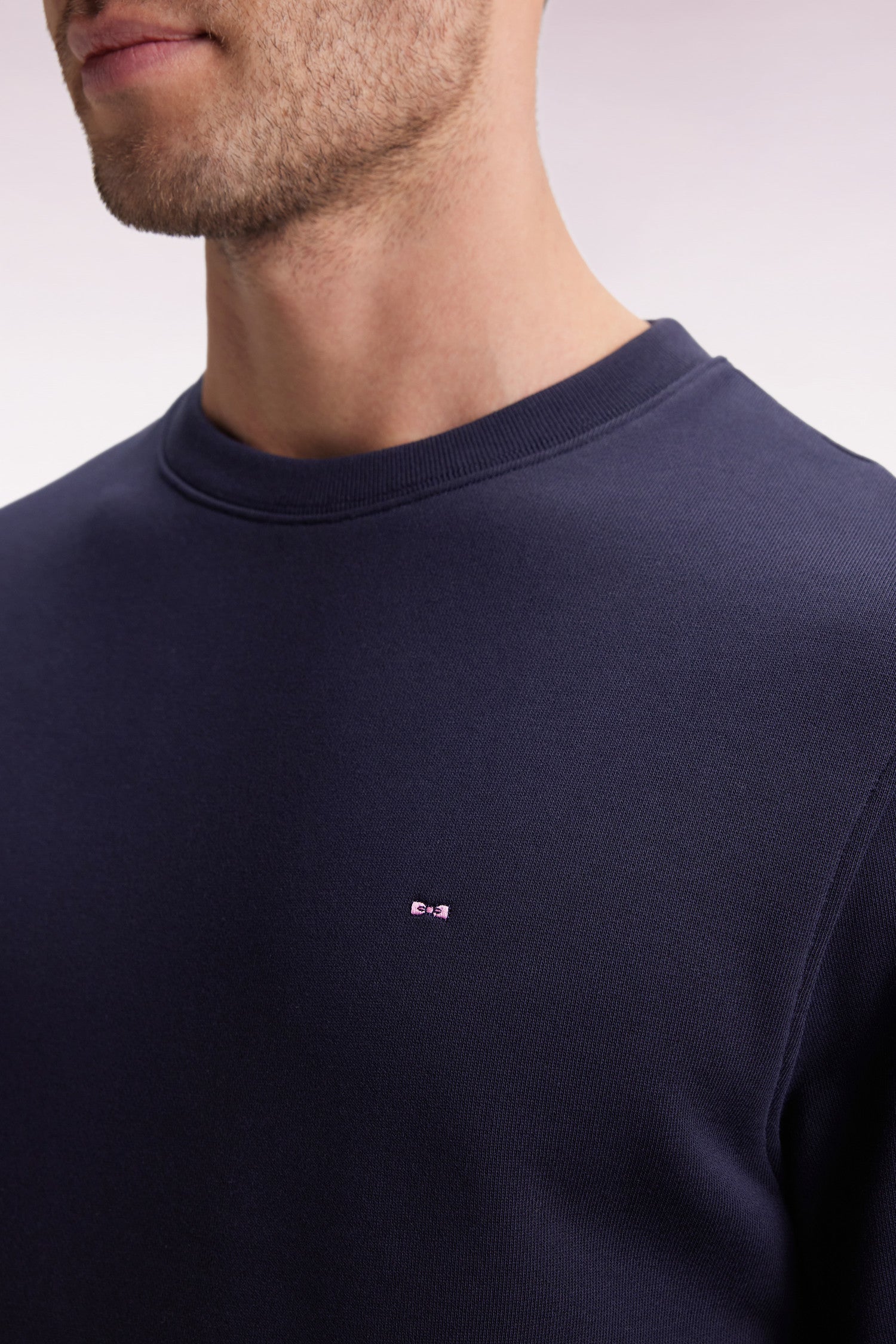 Sweatshirt à col rond en coton marine coupe droite