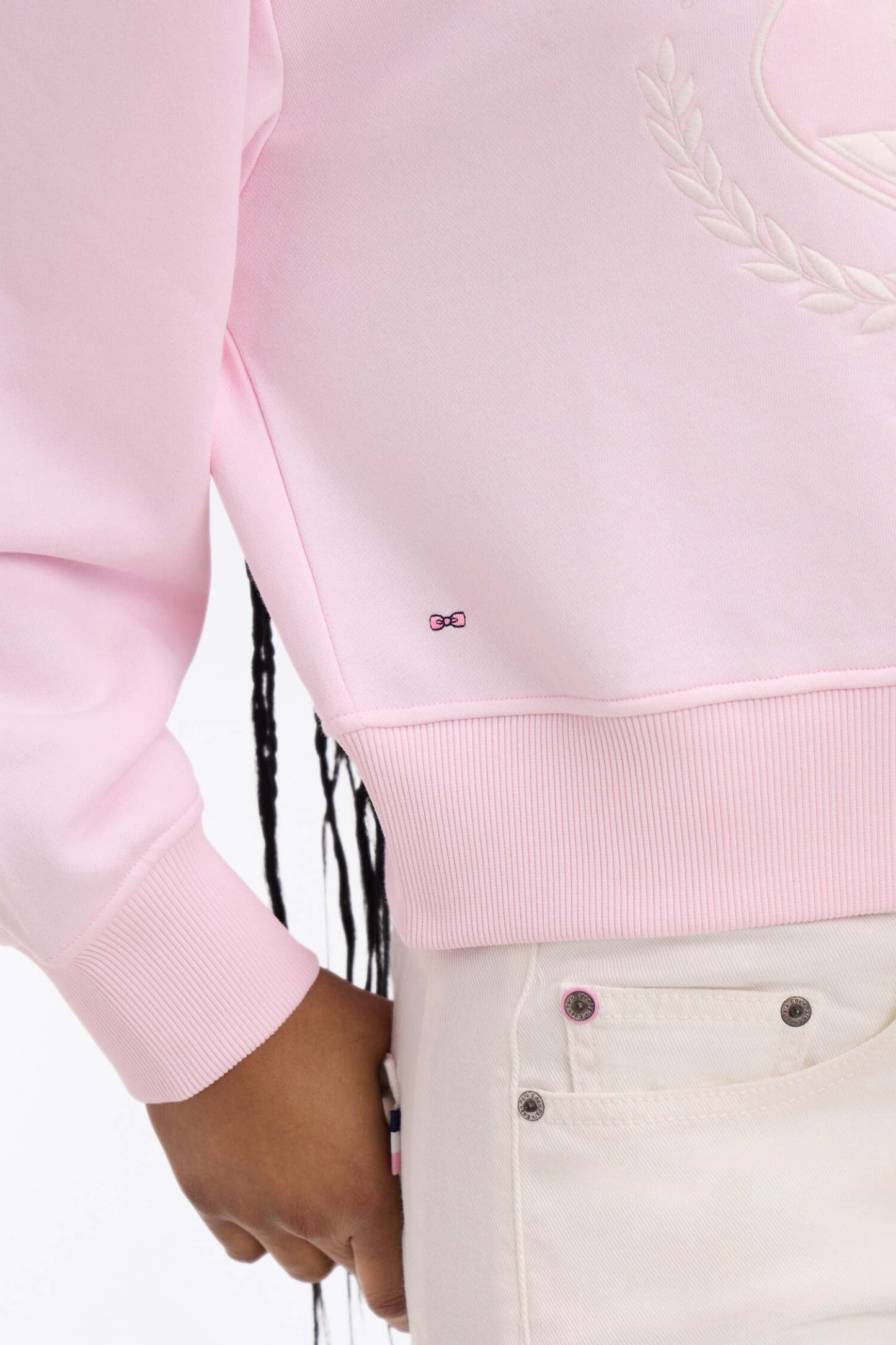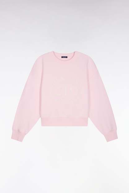 Sweatshirt en coton rose brodé coupe relaxed