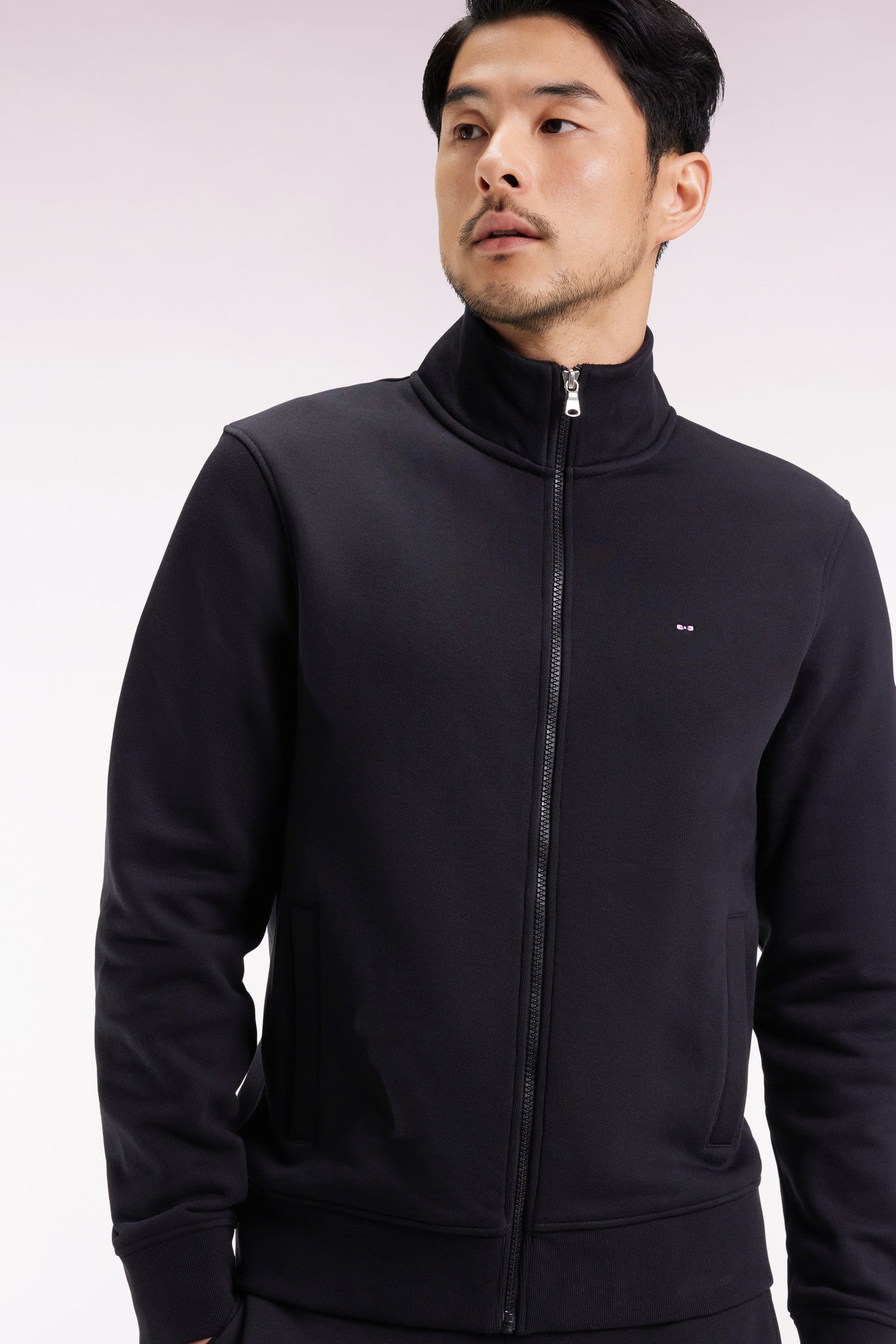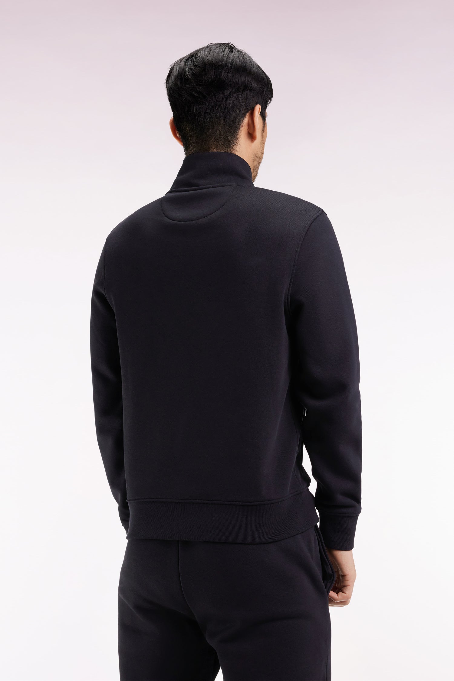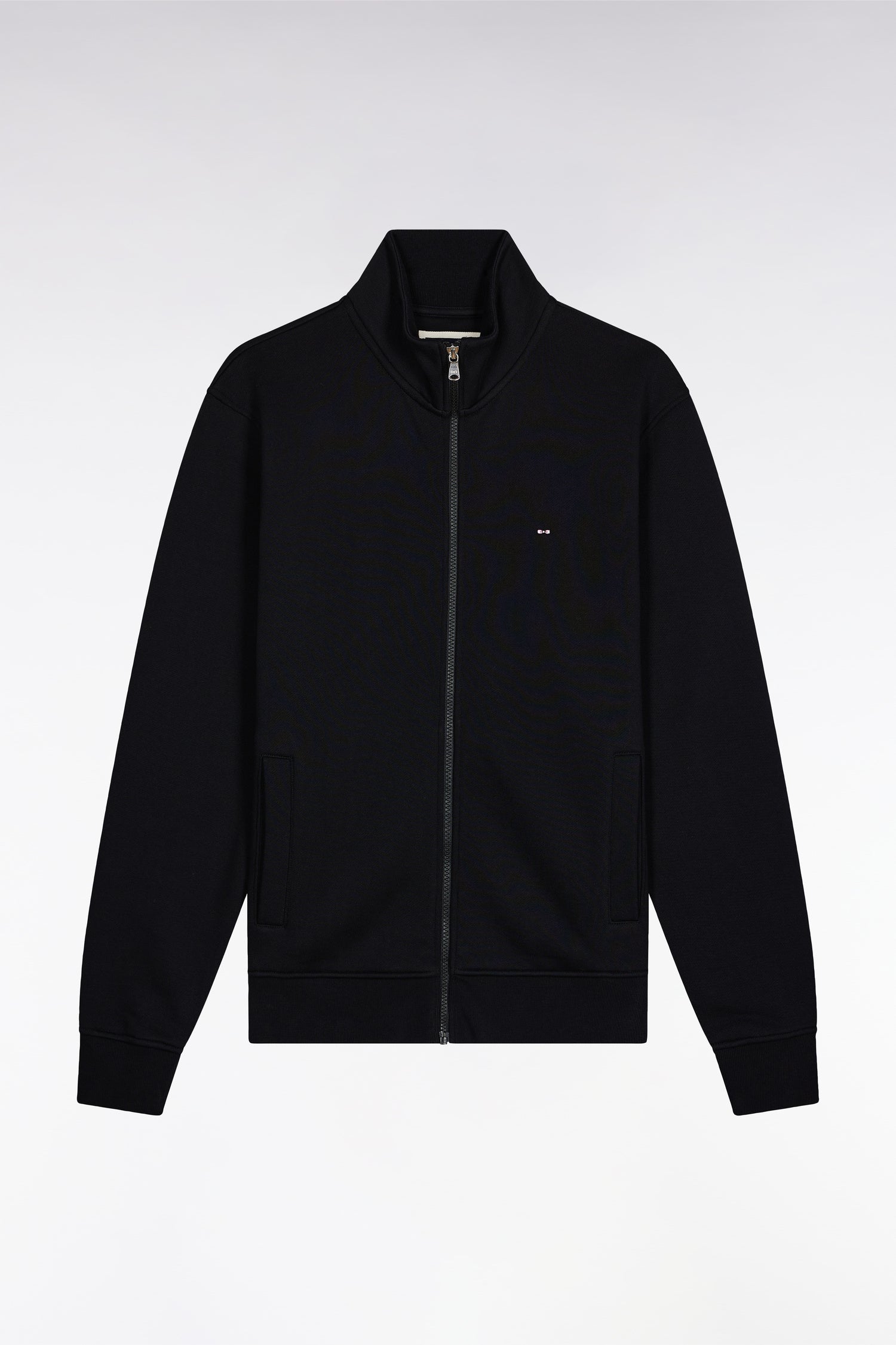 Sweatshirt zippé en coton noir coupe droite
