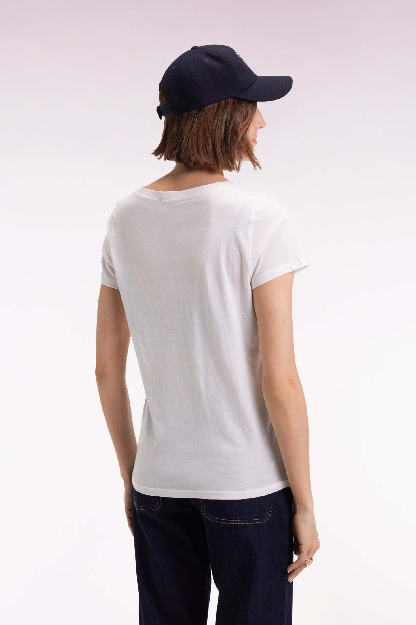En noir, marine ou blanc, ce T-shirt à col V s’impose comme un basique de choix. Confectionné en coton Pima, reconnu pour sa douceur exceptionnelle, sa résistance naturelle et sa durabilité, il offre un confort incomparable au quotidien. Ce T-shirt femme à la coupe droite s’associe aussi bien à des tenues décontractées qu’à des silhouettes plus habillées. Un incontournable pensé pour traverser les saisons avec élégance