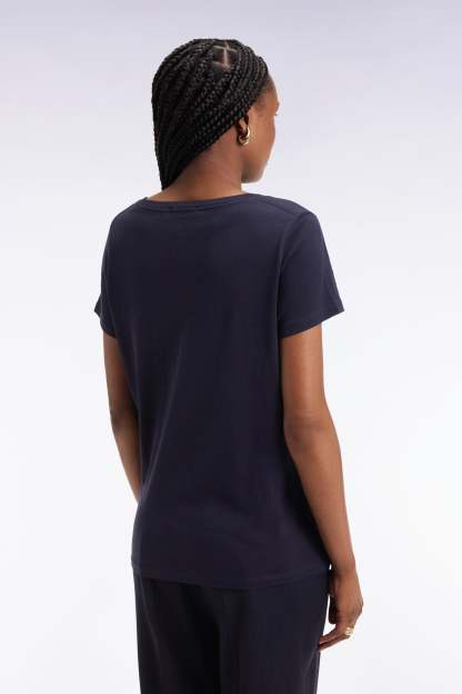 T-shirt à manches courtes en coton Pima marine col V