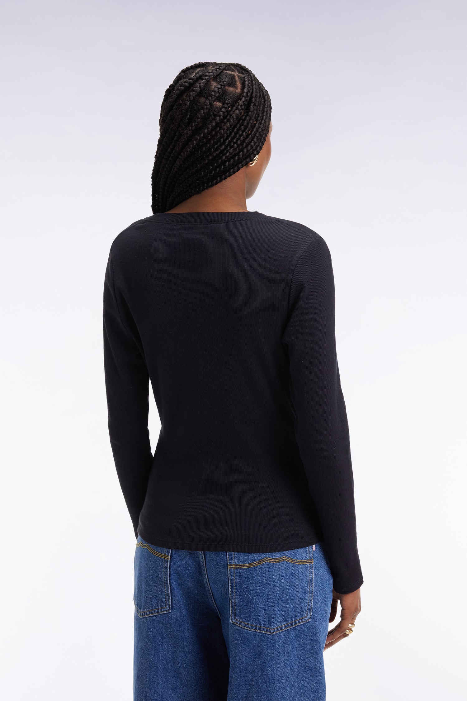 T-shirt à manches longues en coton Pima côtelé noir coupe slim