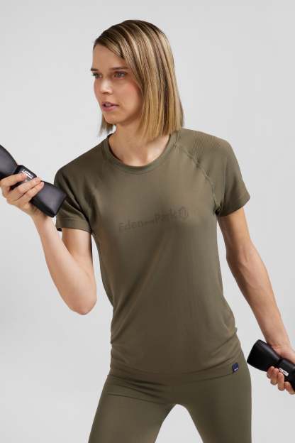 T-shirt de sport manches courtes à détails cerclés kaki