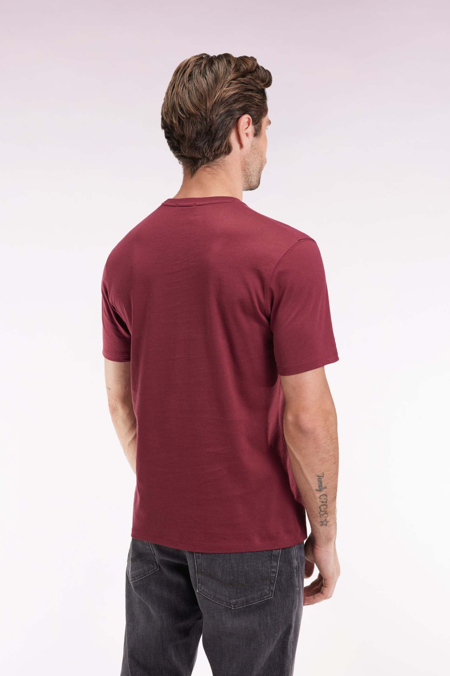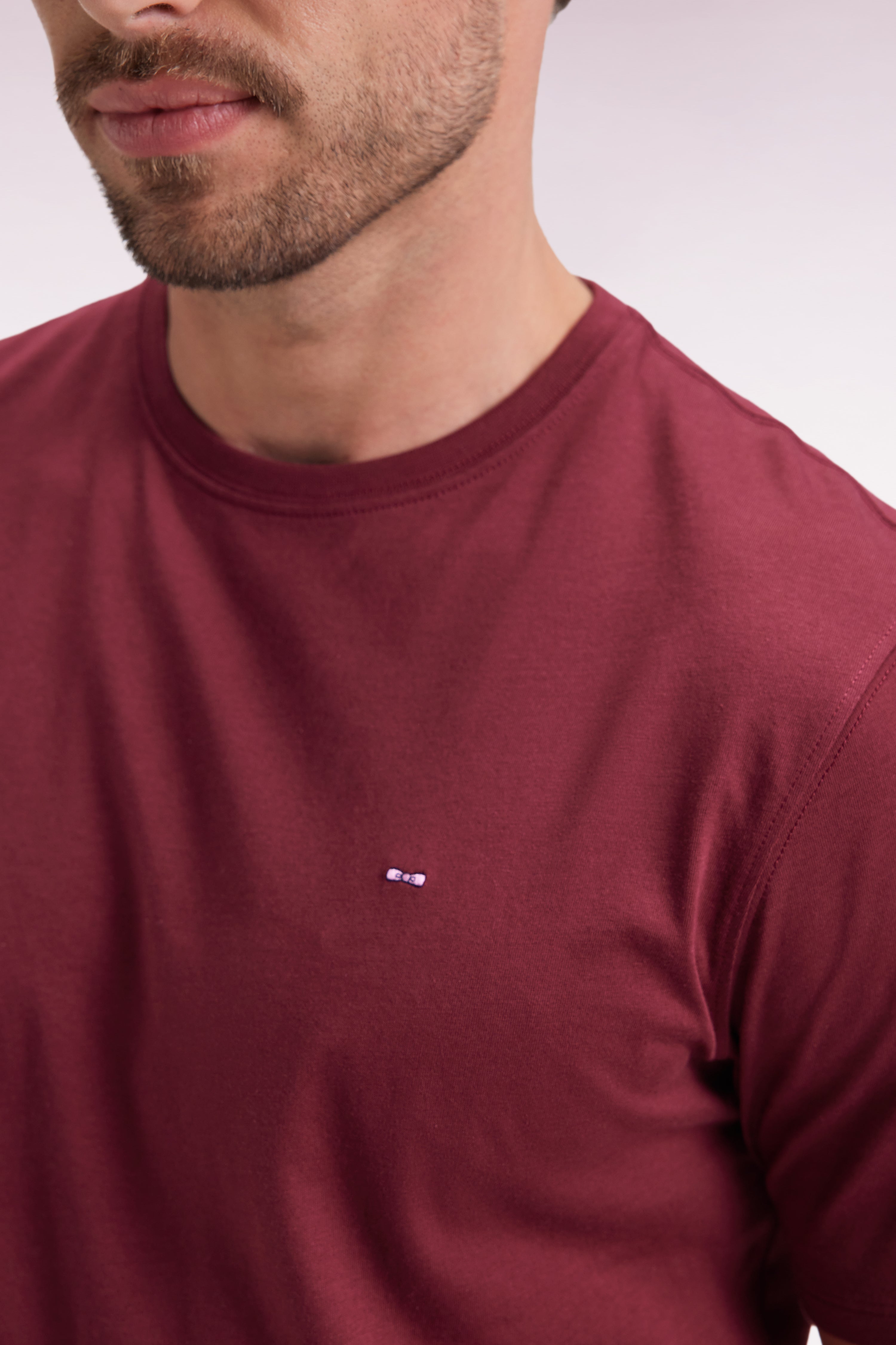 T-shirt manches courtes à col rond en coton Pima bordeaux