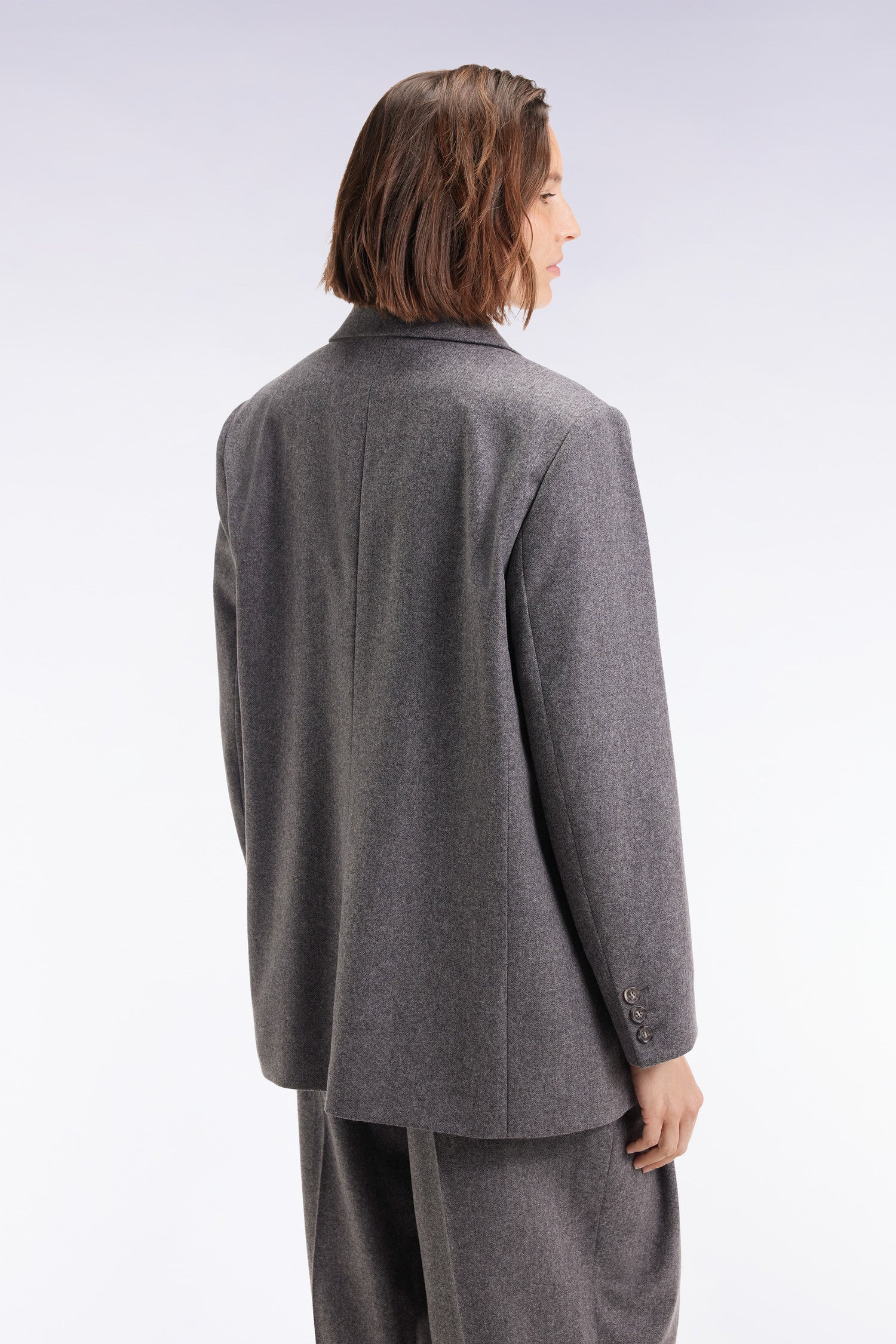 Revisitant les codes du vestiaire masculin, ce blazer oversized en flanelle grise conjugue confort et allure contemporaine. Sa coupe fluide et structurée met en valeur toutes les silhouettes, tandis que sa composition mêlant laine vierge et laine recyclée souligne une conception plus responsable. À l'intérieur, une doublure rayée rend un hommage subtil à l'ADN rugby d'Eden Park. Thermocollée, cette veste au col cranté garantit un entretien facilité et une élégance à l'épreuve du quotidien. À porter en total look avec le pantalon assorti pour twister les classiques